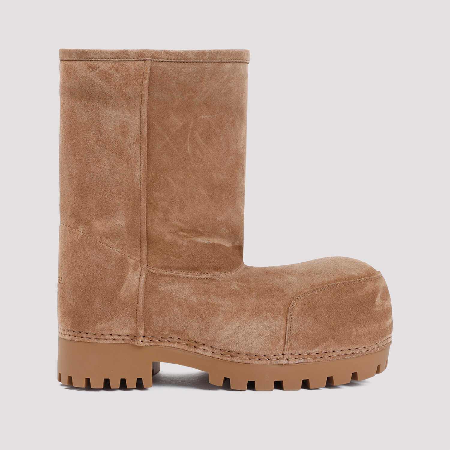 Step out in style with these luxurious Balenciaga Alaska Fur Low boots in nude & neutrals. Made from 100% calf leather with a rubber outsole, these slip-on ankle boots feature an exaggerated round toe, embossed logo, and white fur lining for added warmth and style. Elevate your look with these chic and versatile boots from BALENCIAGA.