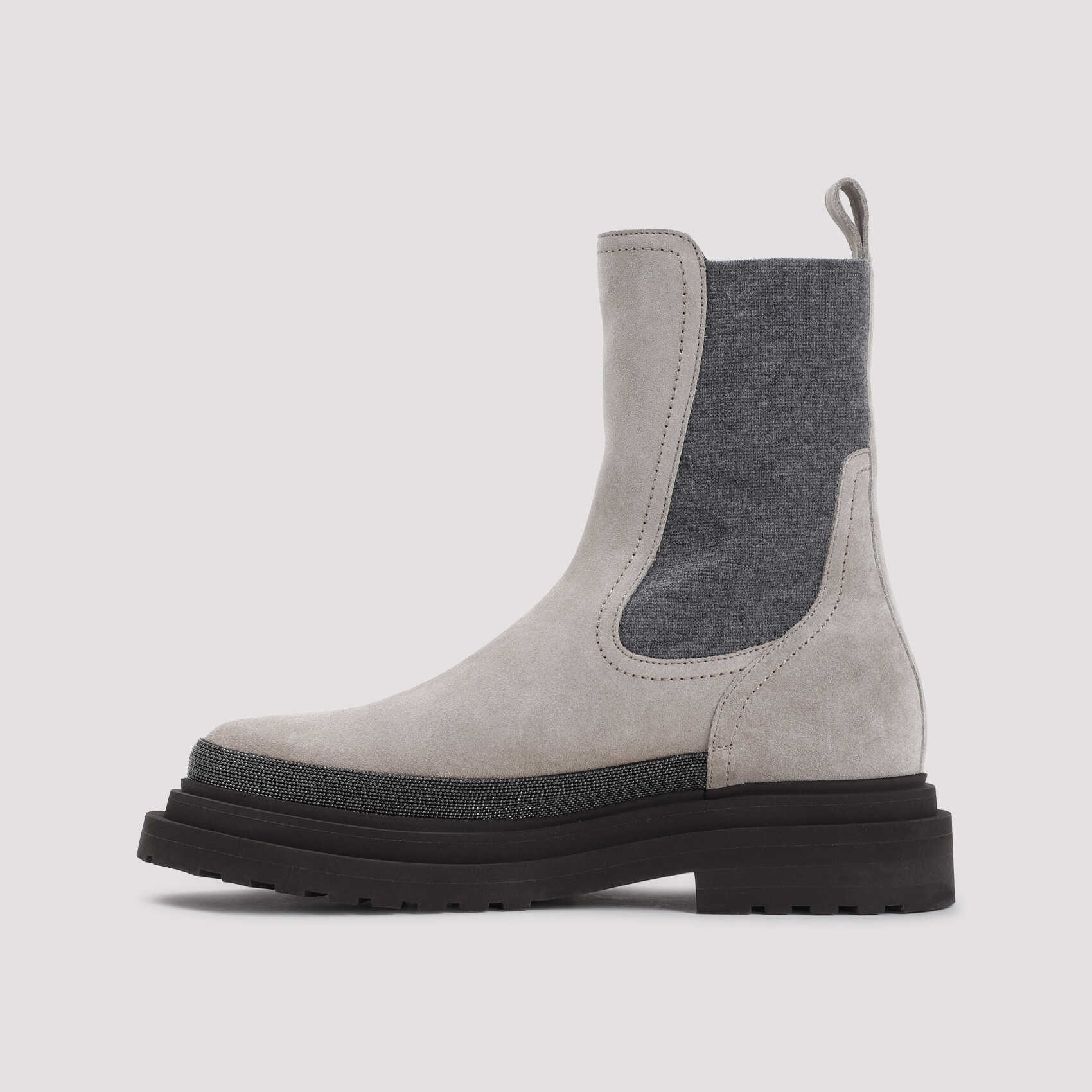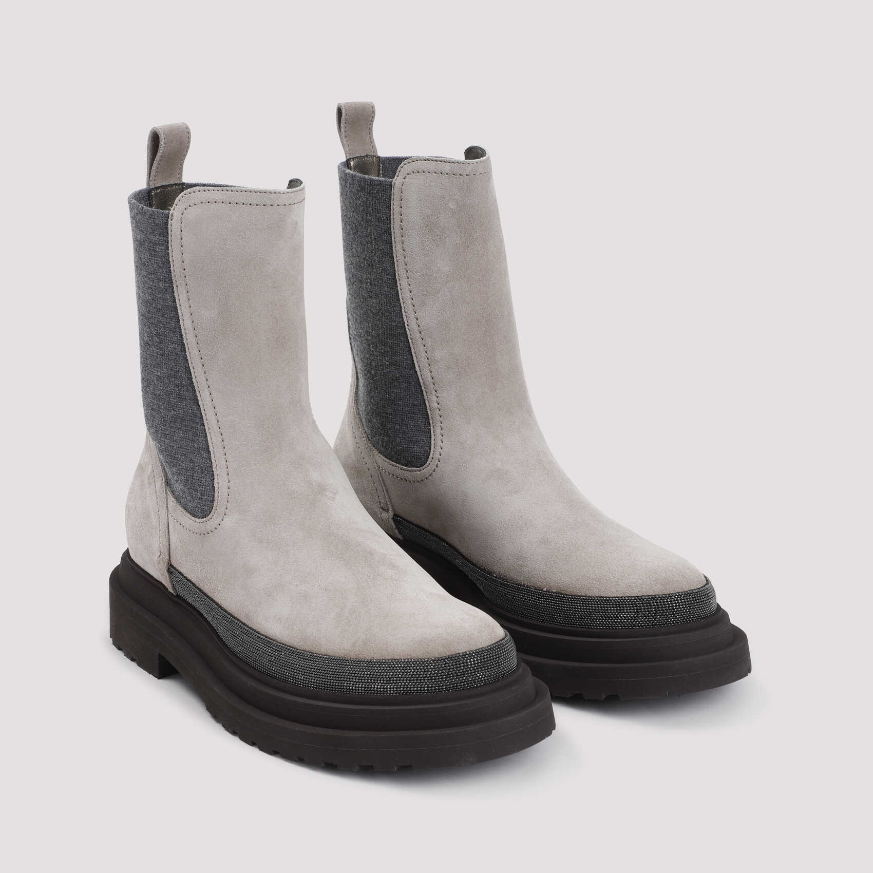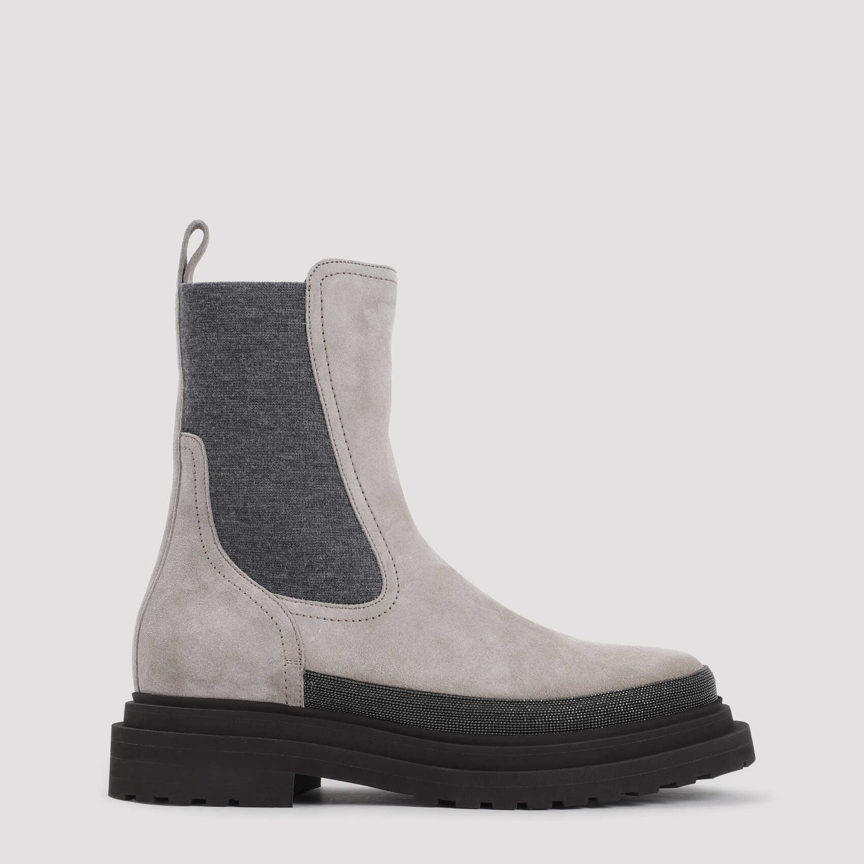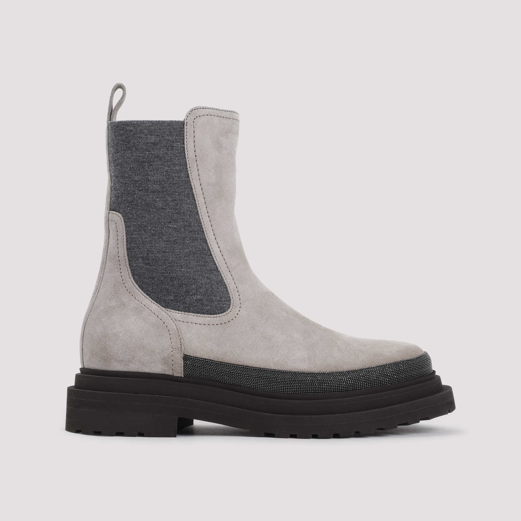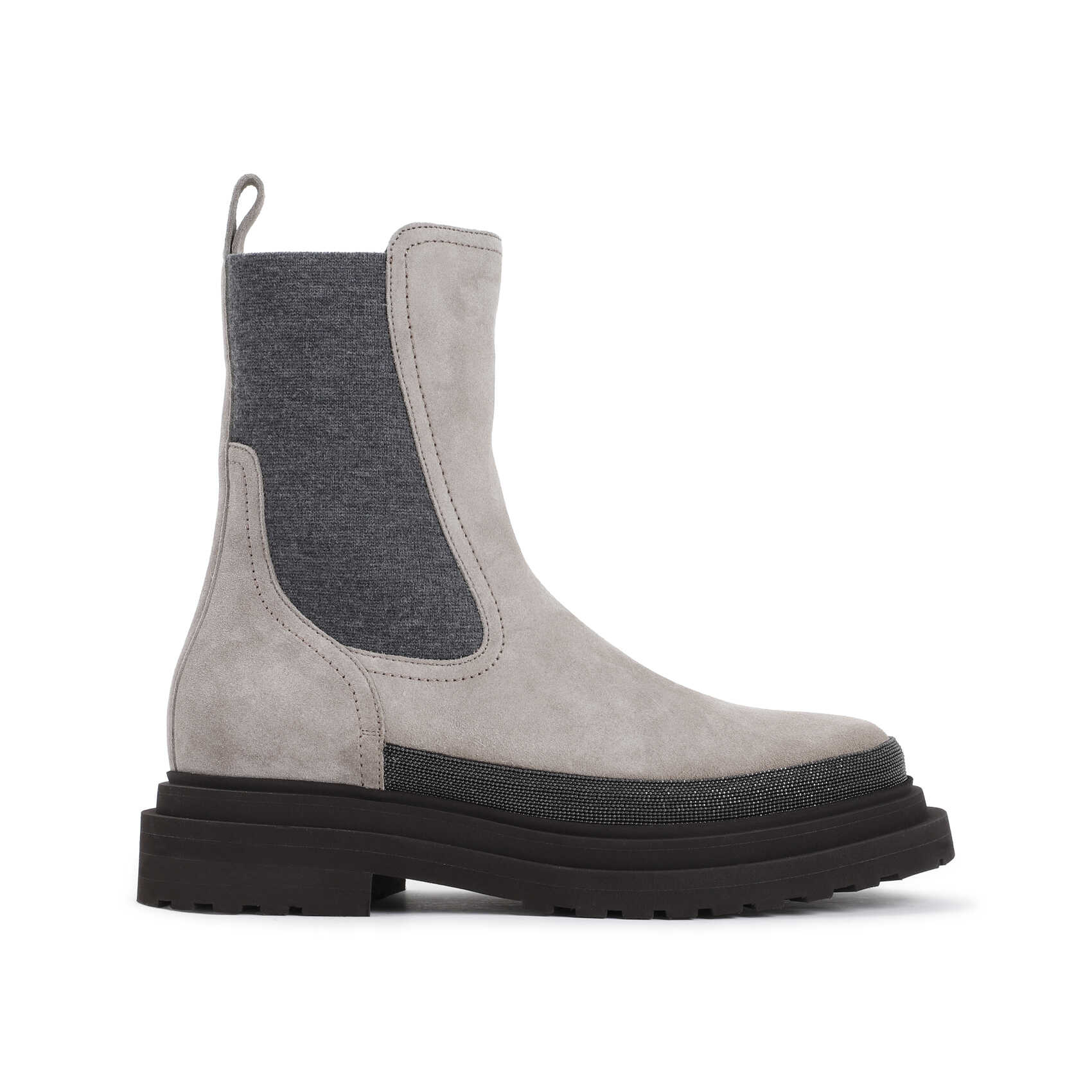 Step out in style with these luxurious BRUNELLO CUCINELLI MZSFG2745 ankle boots. Made from 100% suede leather and rubber, they are perfect for adding a touch of sophistication to any outfit. The nude & neutrals color palette complements any wardrobe, making them a must-have for any fashion-forward woman. Elevate your look with these high-quality, designer boots today!