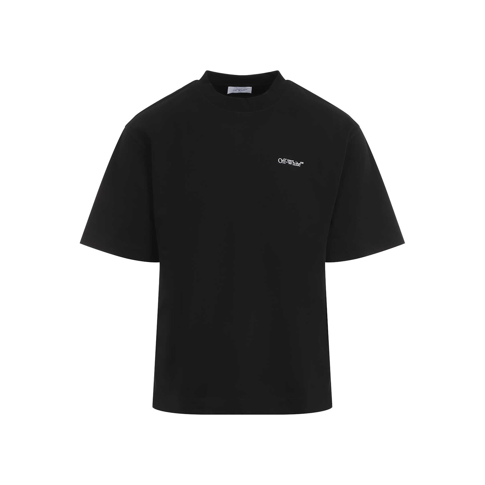 Elevate your style with this sleek Black OFF-WHITE T-Shirt. Made from 100% Cotton, this shirt features a modern design with the iconic OFF WHITE branding. Perfect for casual outings or a night out on the town. Stand out from the crowd in this must-have piece.