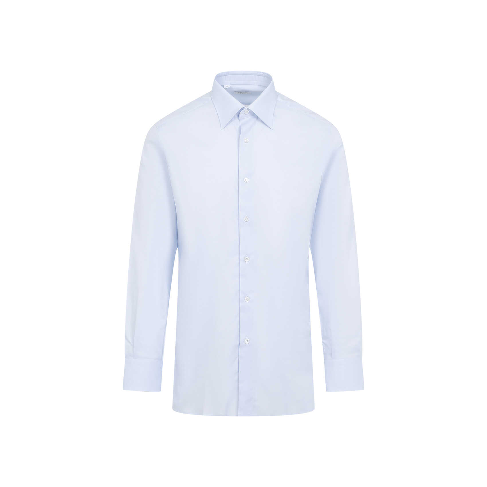 Brioni Light Blue Cotton Shirt. Light Blue cotton, pointed collar, front button closure, long sleeves, buttoned cuffs, back yoke.