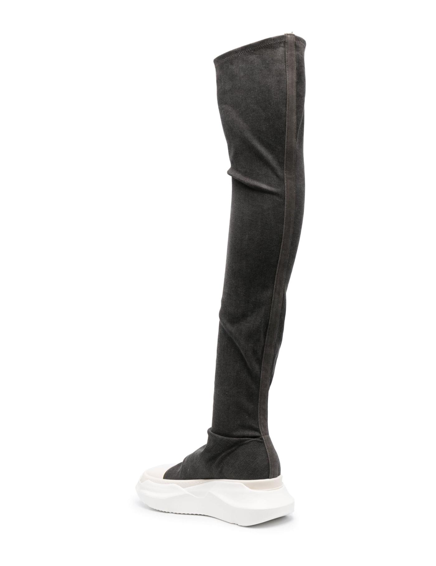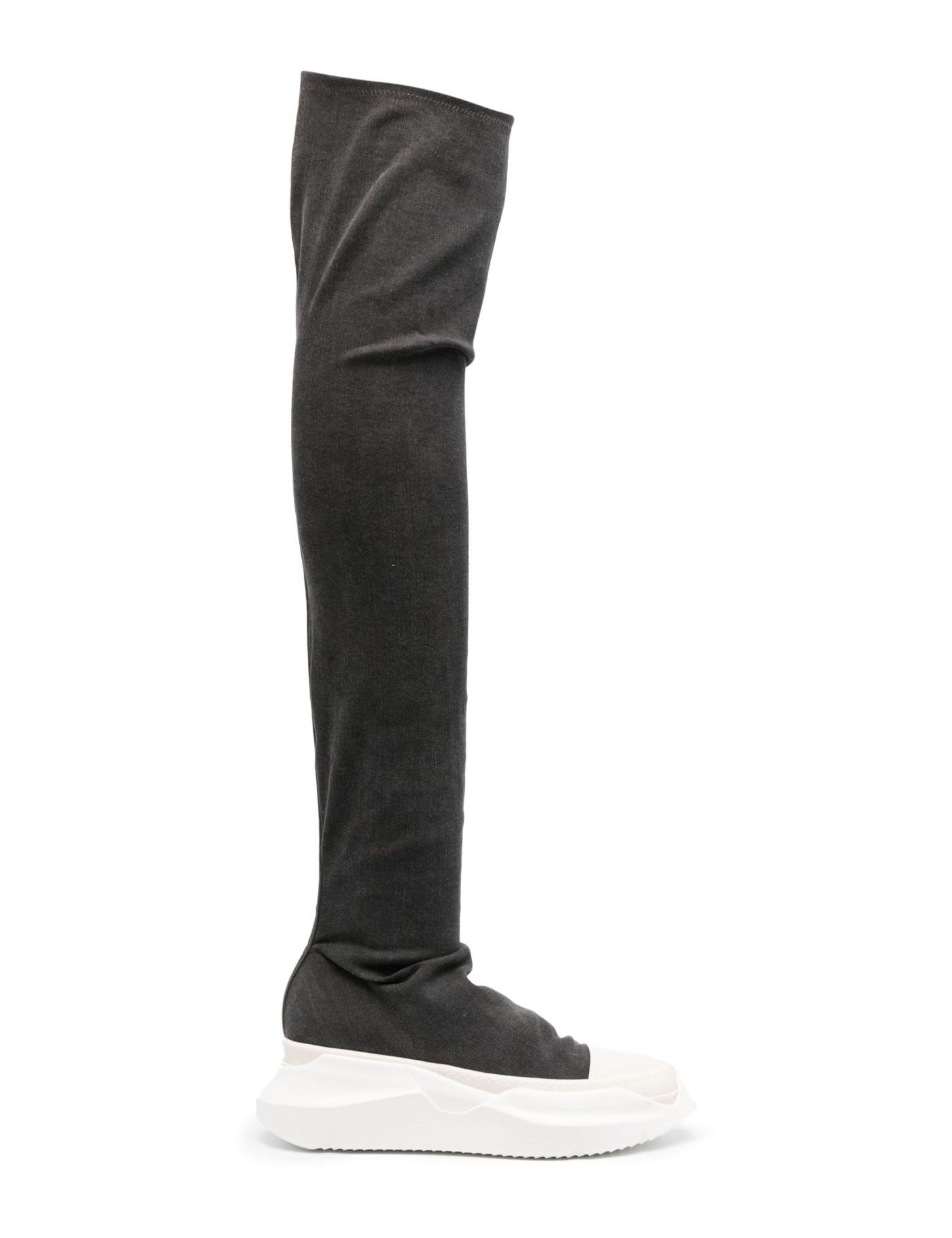 Following the brand's monochrome palette, the Abstract Stockings boots from Rick Owens DRKSHDW feature a dark grey, denim construction. They have a comfortable, stretch design that sits atop a chunky rubber sole in cream white.