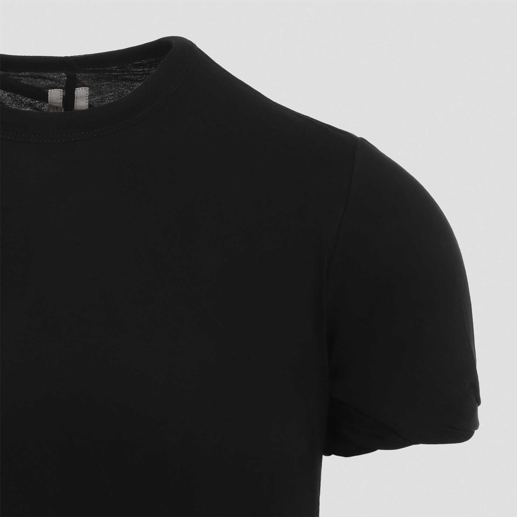 Elevate your style with this black cotton t-shirt from RICK OWENS. Made from premium quality cotton, this t-shirt features a round neck, short sleeves, and a unique draped effect design. Perfect for casual outings or dressing up for a night out. Add a touch of signature RICK OWENS style to your wardrobe with this must-have piece.