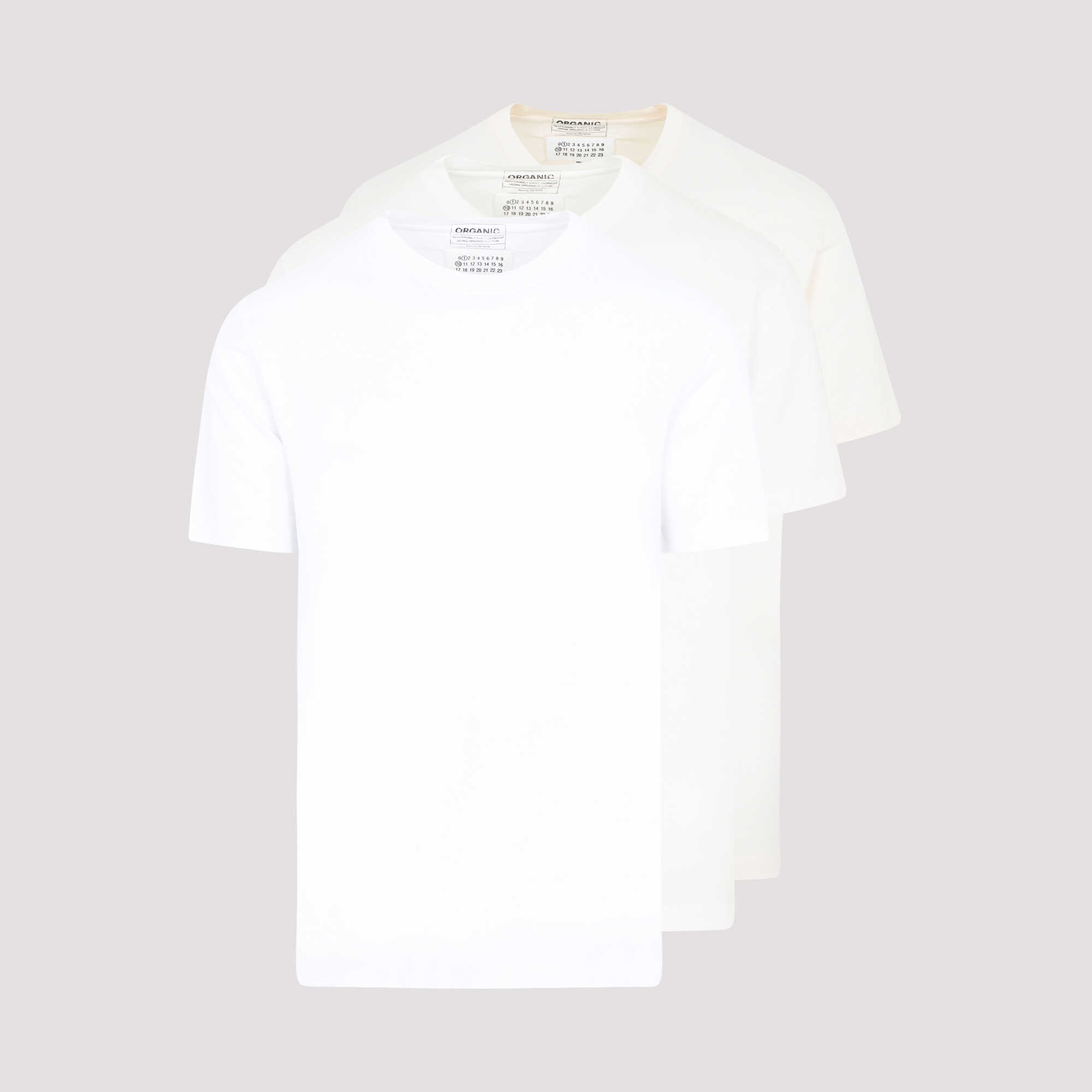 Elevate your style with this sleek Maison Margiela t-shirt. Crafted from 100% organic cotton, it features a crew neckline, short sleeves, and a straight hem. The neutral white color and logo label detail add a touch of sophistication. Perfect for casual outings or layering under a blazer, this t-shirt is a versatile wardrobe essential.