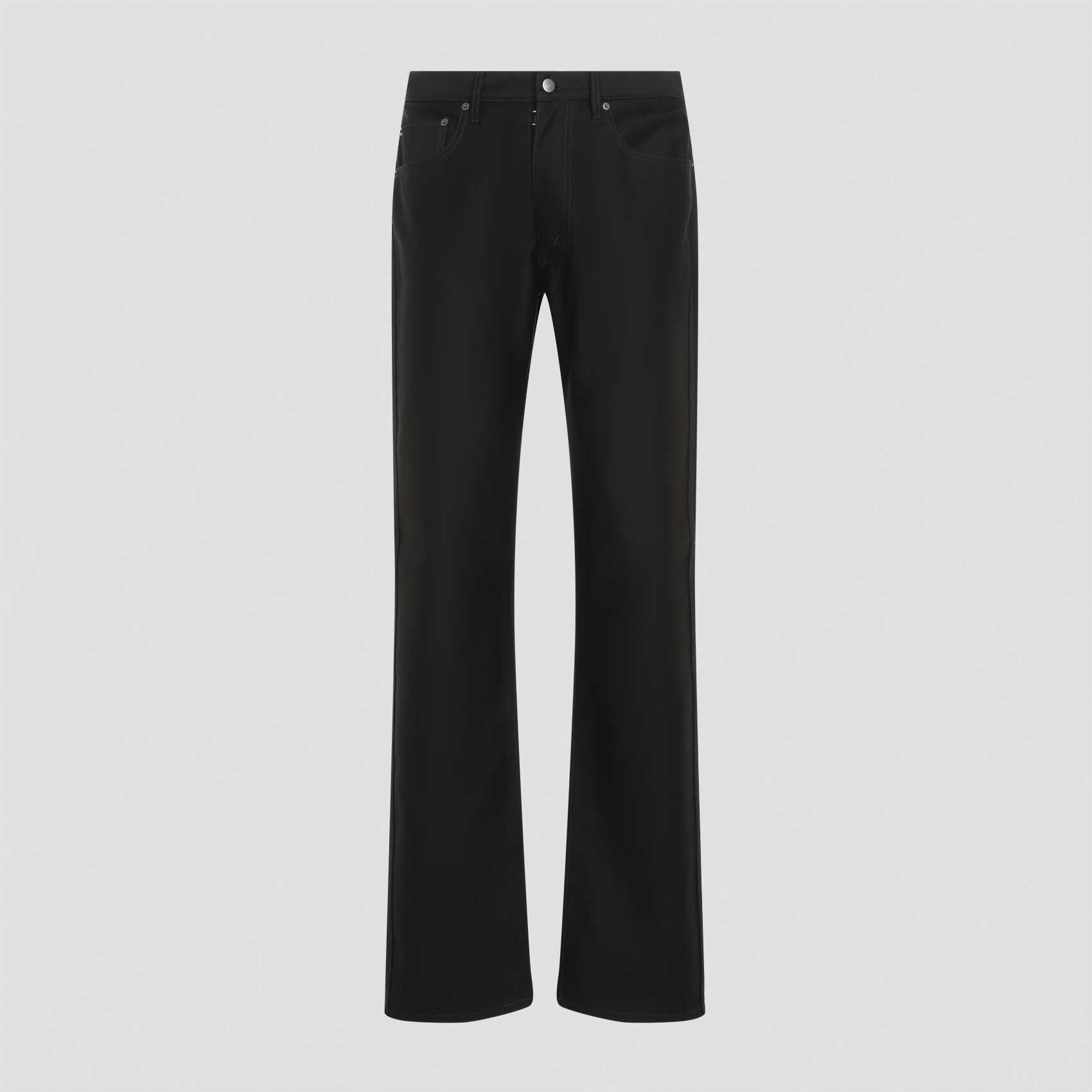 Elevate your style with these sleek black MAISON MARGIELA jeans. Crafted from 100% cotton, they offer a comfortable fit and a modern look. Perfect for any occasion, these jeans are a must-have for the fashion-forward man. Upgrade your wardrobe today!