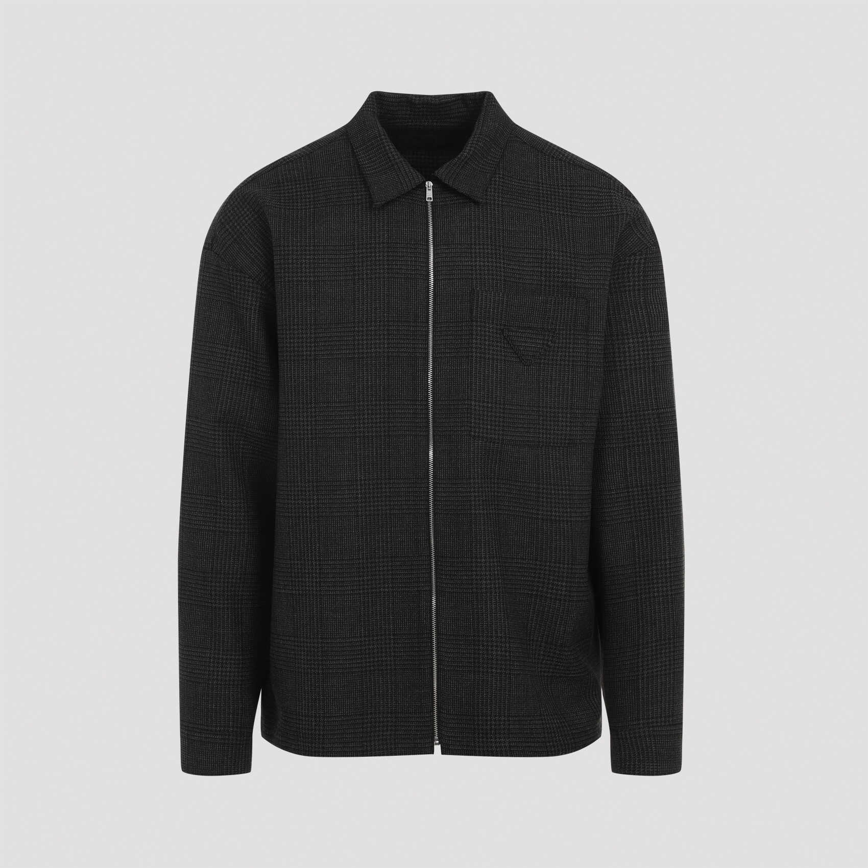 Elevate your style with this sophisticated PRADA SC540S211.15OW shirt in a classic Grey color. Crafted from pure wool, it features a pointed collar, front zip fastening, chest pocket, signature logo patch, long sleeves, and a stylish checked pattern. Made for the modern man who values quality and elegance. Make a statement with PRADA.