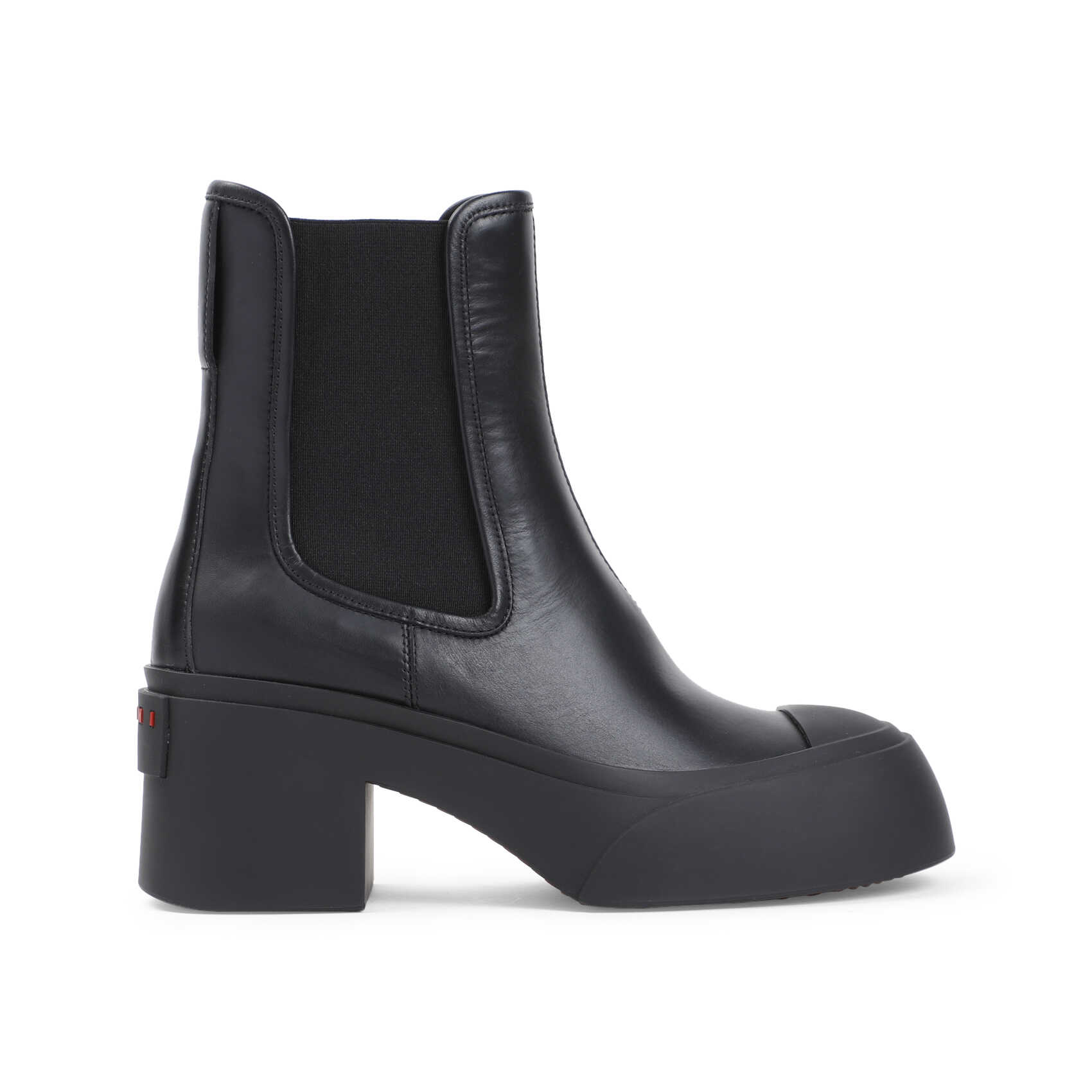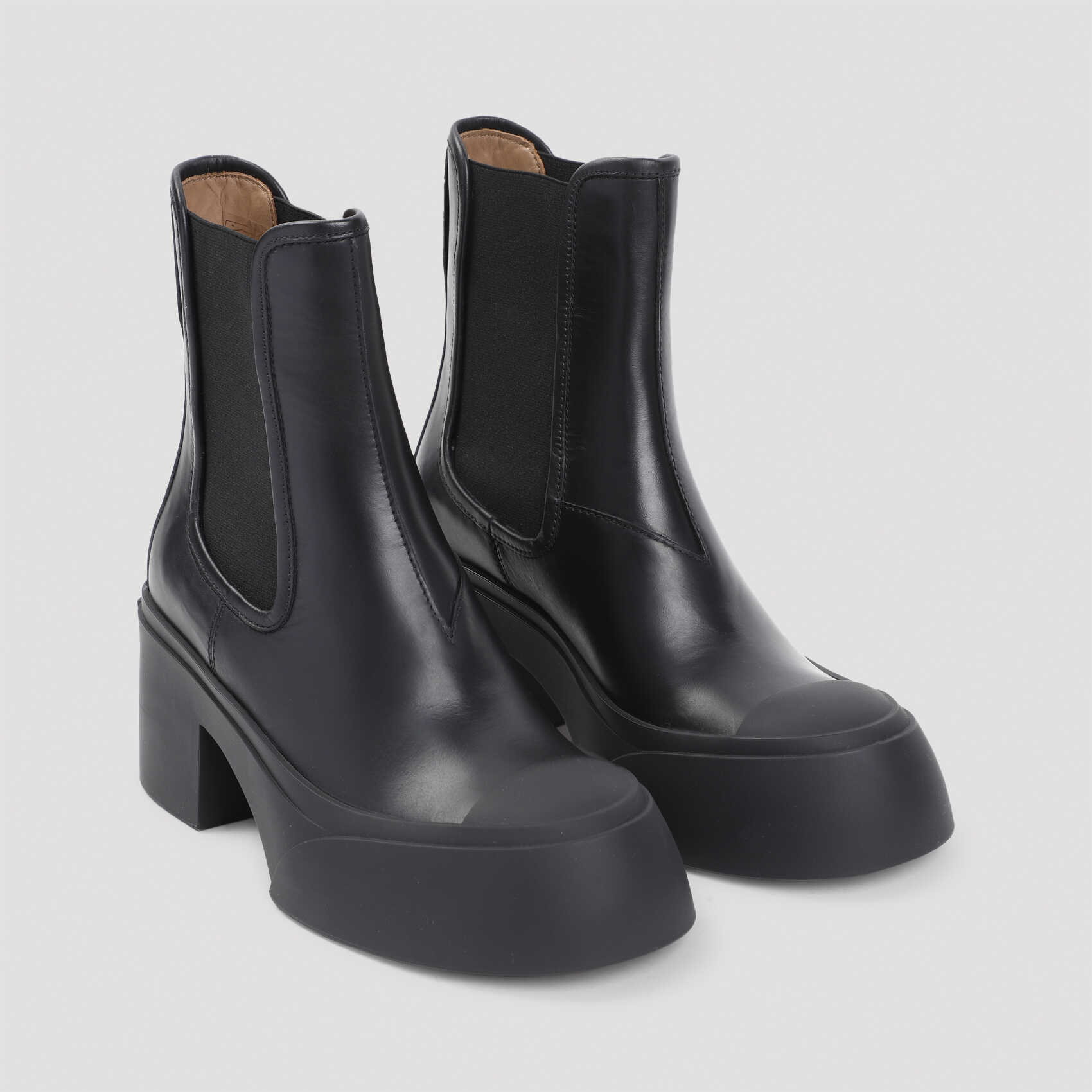 Step out in style with these elegant black ankle boots from MARNI. Made from high-quality leather and rubber, these boots feature a comfortable 6cm heel height. Perfect for adding a touch of sophistication to any outfit.