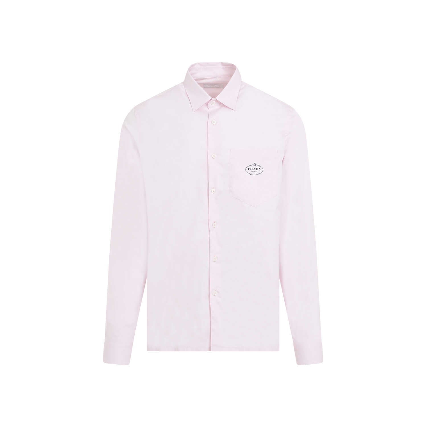 Elevate your style with this luxurious Prada pink cotton shirt. Made from 100% pure cotton, it features a pointed collar, front buttoned fastening, chest pocket, and a sleek black logo. The long sleeves with buttoned cuffs and straight hem add a touch of sophistication. Perfect for any occasion, this shirt is a must-have for the modern man. Stand out in style with PRADA.