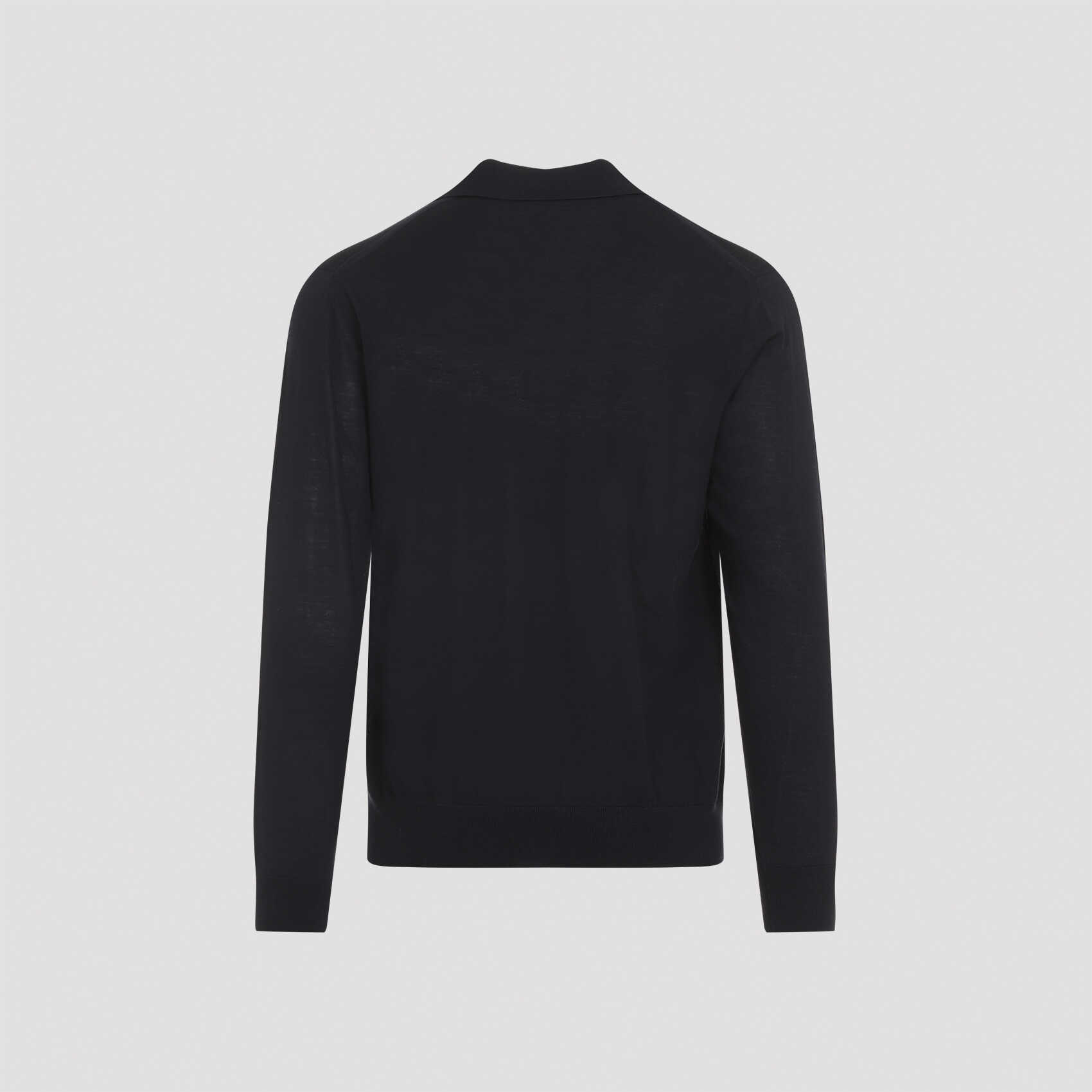 Elevate your style with this Prada blue wool polo. Made from super-fine wool yarn, featuring a classic polo collar, front half-zip closure, and a white embroidered logo on the chest. The long sleeves and ribbed edges add a touch of sophistication. Perfect for a casual yet refined look. Get yours today!