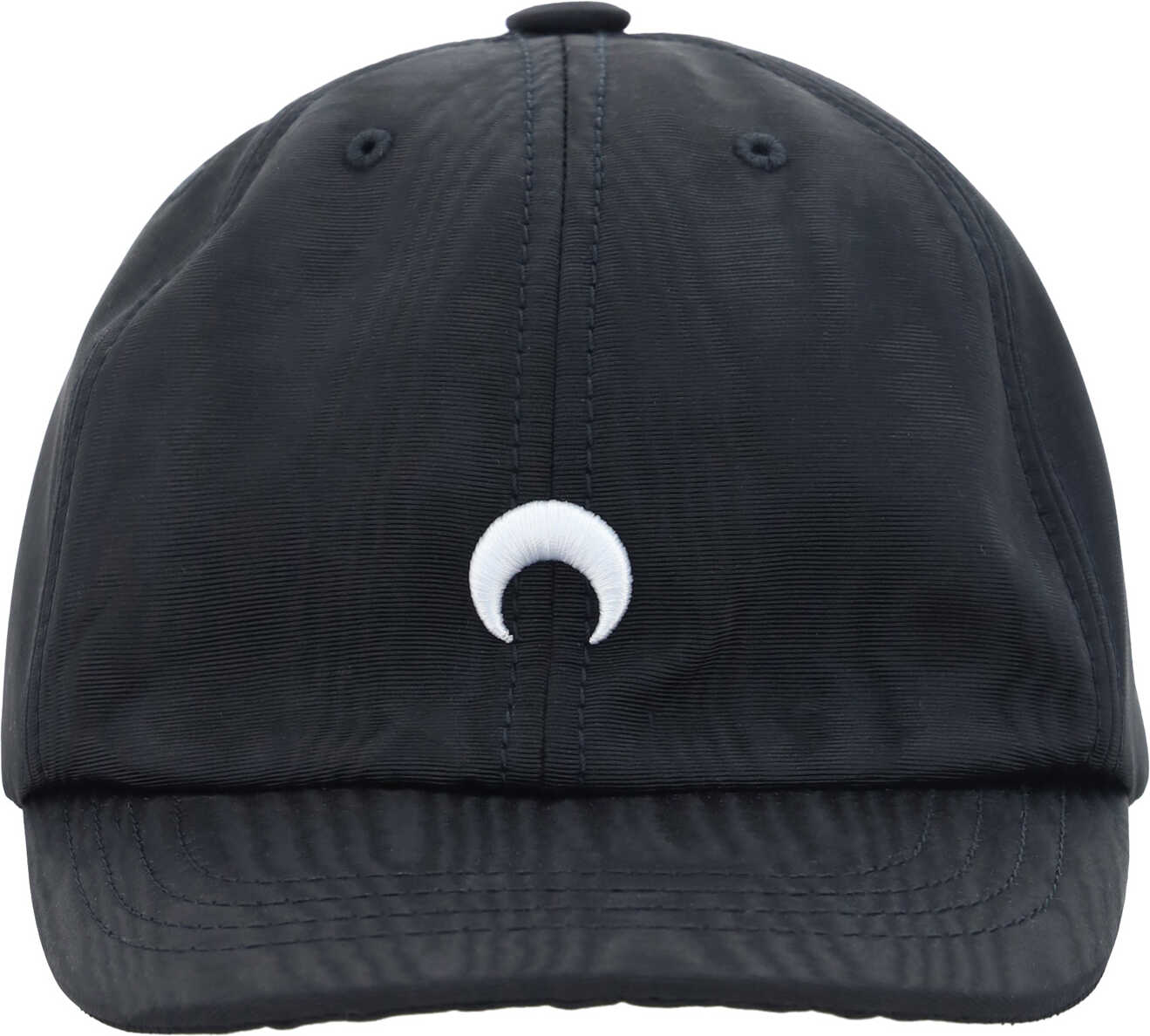 Cotton Moire Baseball Cap by Marine Serre, adjustable back closure, iconic brand logo printed on the front.
