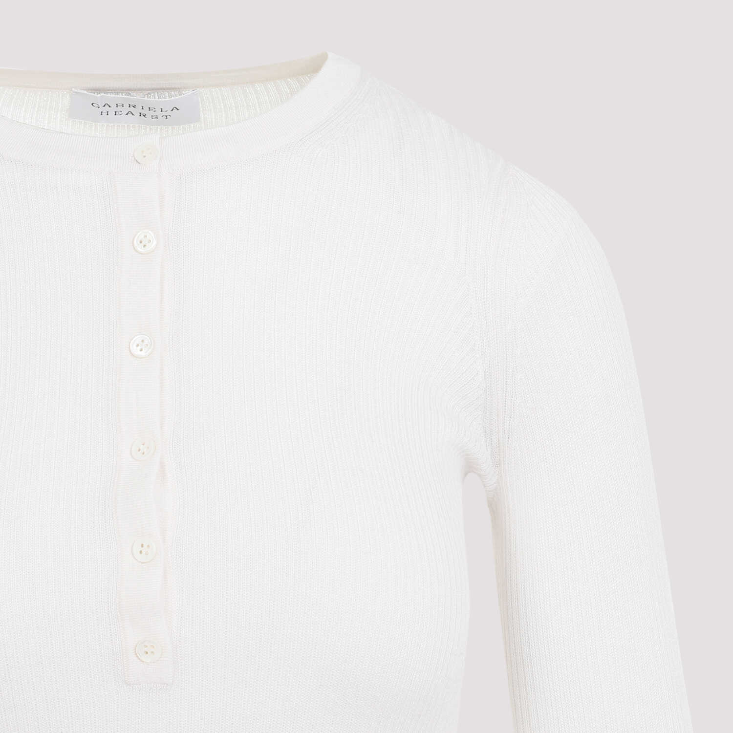 Elevate your wardrobe with the luxurious Gabriela Hearst ivory white cashmere Julian Henley t-shirt. Perfect for any occasion, this t-shirt features a round neck, front buttoned fastening, and a silk blend for added comfort. Make a statement with the ribbed detailing and straight hem. Experience the quality of Cashmere 70%CASHMERE 30%SILK blend from the renowned brand Gabriela Hearst.
