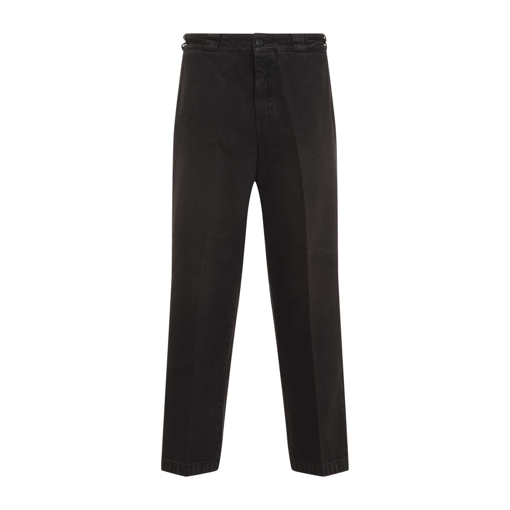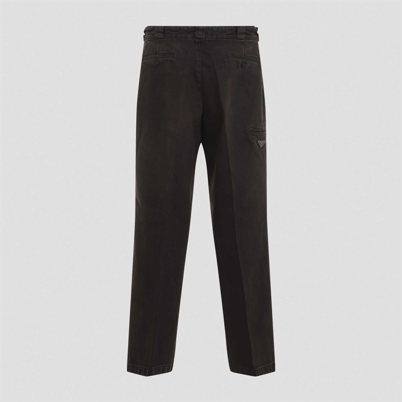 Elevate your style with these luxurious PRADA trousers in a rich Brown color. Made from 100% Cotton, these trousers are perfect for any occasion. The sleek design and high-quality material make them a must-have for any fashion-forward man. Add a touch of sophistication to your wardrobe with PRADA.