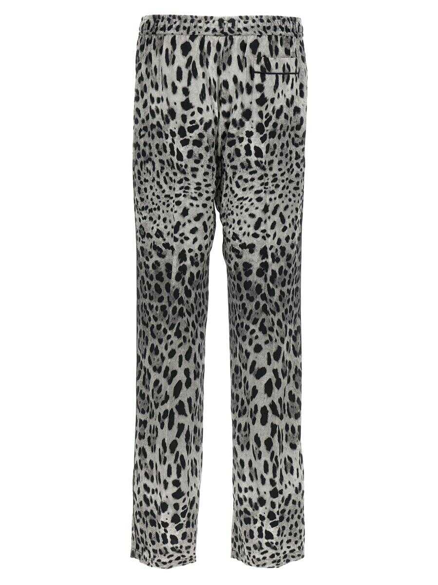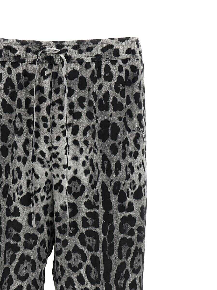 'Leo' print satin pants with piping details, elastic waistband and drawstring, pockets