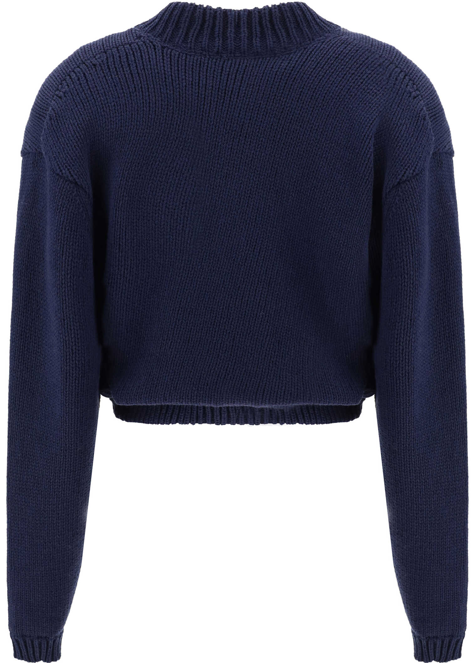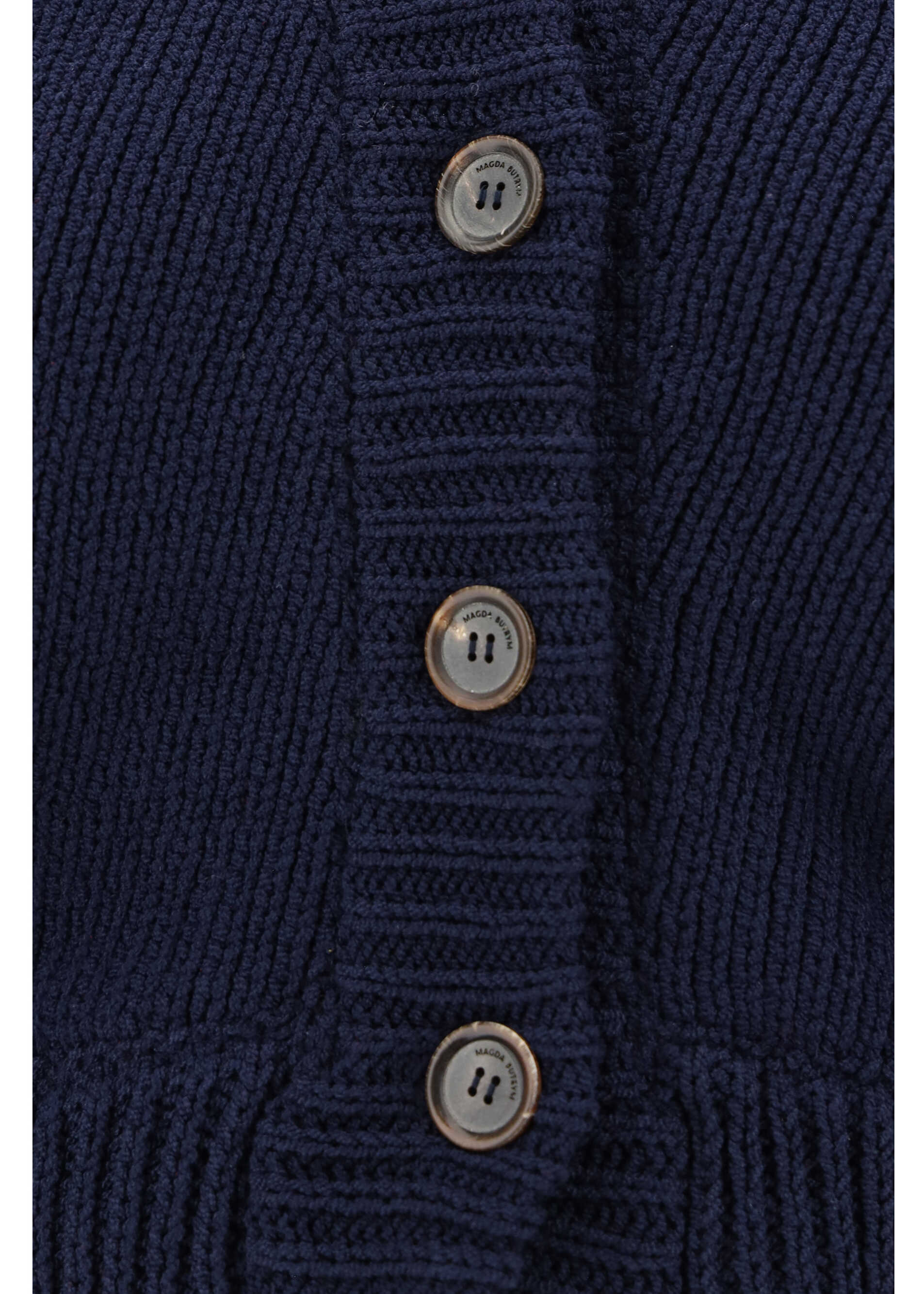 Cotton Cardigan by Magda Butrym, ribbed crew neck, front closure with contrasting buttons, ribbed cuffs, ribbed hem, structured shoulders, silk lining, monochrome pattern, regular fit.