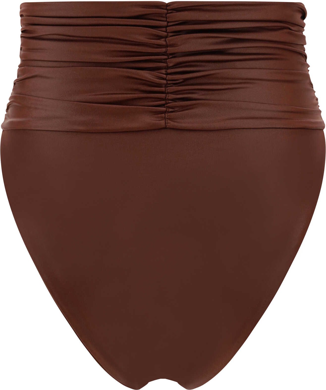 Swim Botton by Magda Butrym, high-waisted briefs, scalloped pattern, ruched waistband detail, flower appliqué on front and removable, monochrome pattern.