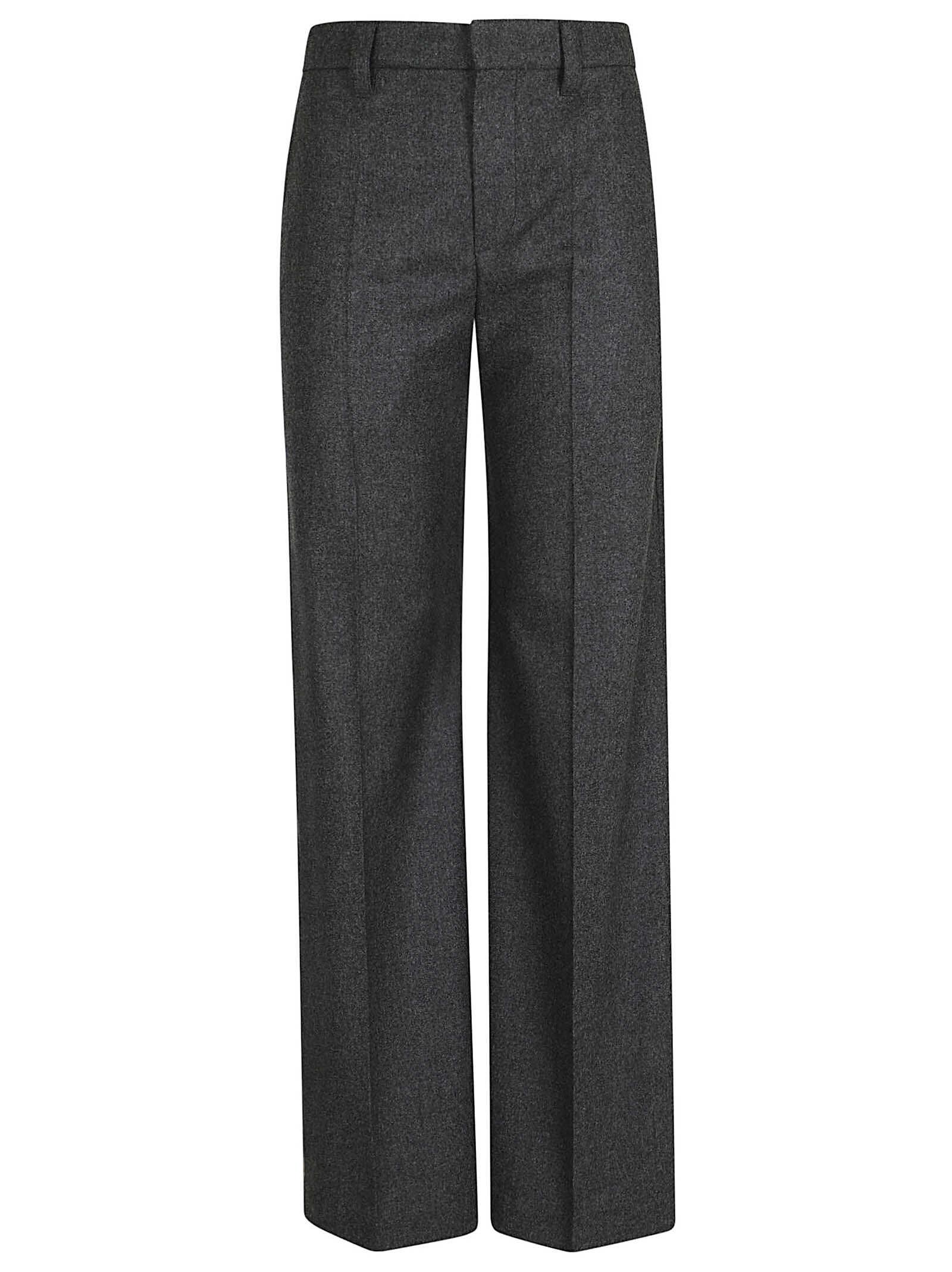 Elevate your style with these luxurious Grey virgin wool and cashmere flannel trousers by Brunello Cucinelli. Featuring a loose fit with full length pleats, zip closure, and front/back pockets. The warm and soft feel of the fabric will keep you comfortable all day long. Perfect for a chic and sophisticated look. Get yours now!