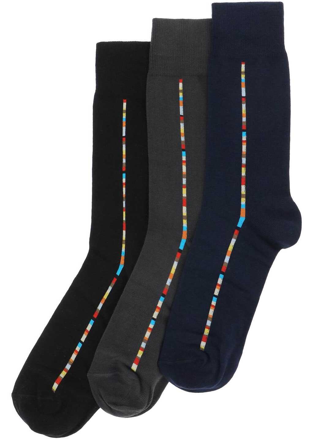 Cotton socks by Paul Smith in a pack of three in three different color variations, featuring the iconic central "Signature Stripe" pattern. One size.