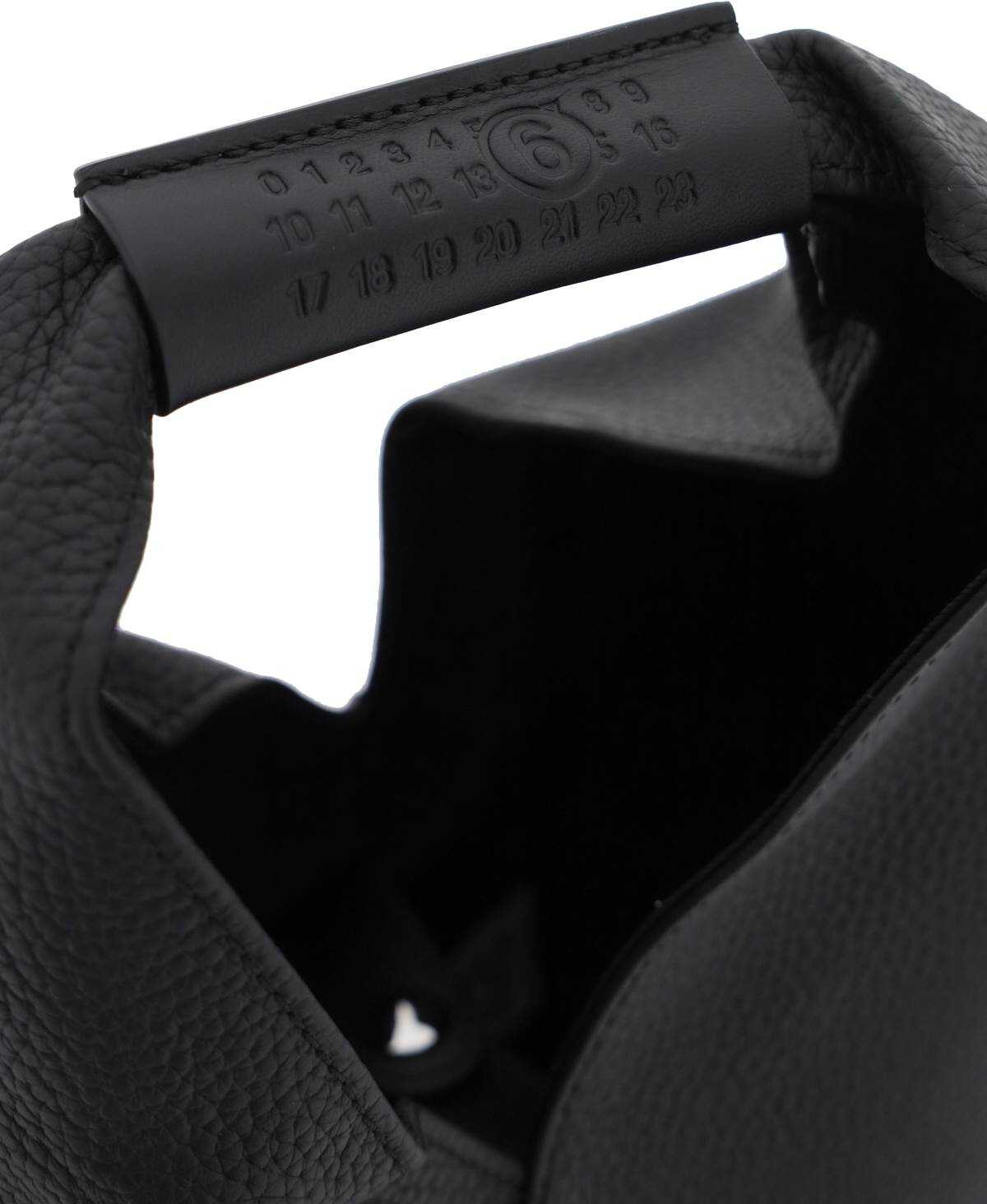 MM6 Maison Margiela Japanese Classic small handbag in grained leather with double triangle shape ending in the leather-wrapped top handle with debossed logo. Signature straight white stitch on the back. Press-stud on the lower edges to change the bag shape. Press-stud closure, cotton lining and one inner flat pocket with press-stud closure. Silver-finished metalware.