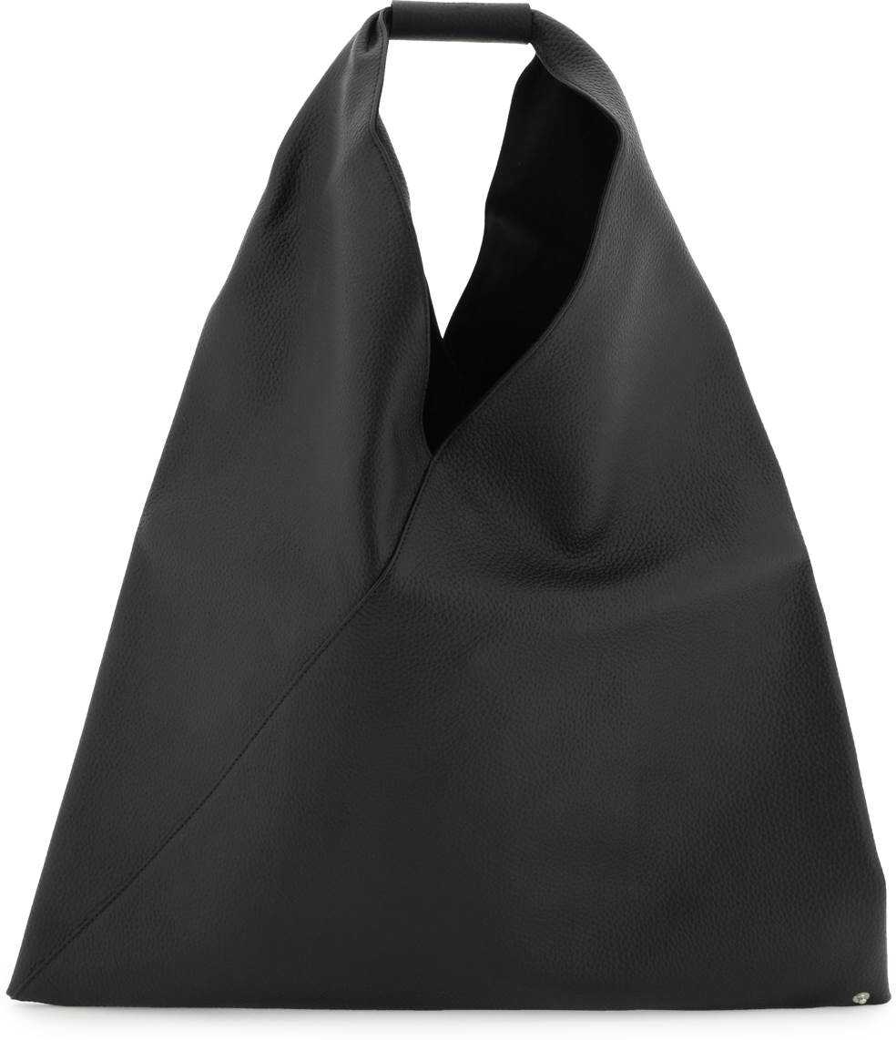 MM6 Maison Margiela Japanese bag in grained leather with double triangle shape ending in the leather-wrapped top handle with debossed logo. Signature straight white stitch on the back. Press-stud on the lower edges to change the bag shape. Press-stud closure, cotton lining and one inner flat pocket with press-stud closure. Silver-finished metalware.