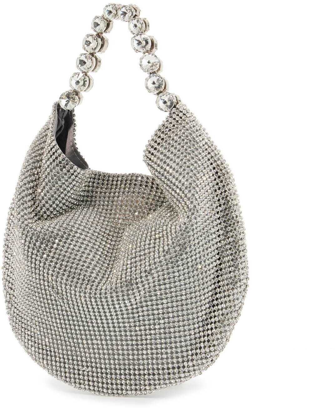 The Chainmail hobo bag by L'ALINGI is made of soft metal mesh with a handle adorned with embedded crystals. It features a magnetic closure and a satin-lined interior.