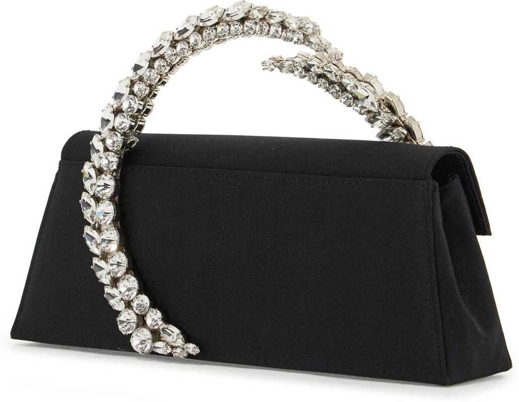 The Clutch Karma by L'ALINGI is made of a blend of silk satin. Its structured design is embellished with circular silver metal handles, starting from the base of the bag and adorned with degradé crystals. It features a magnetic closure and a lined interior with a credit card slot.