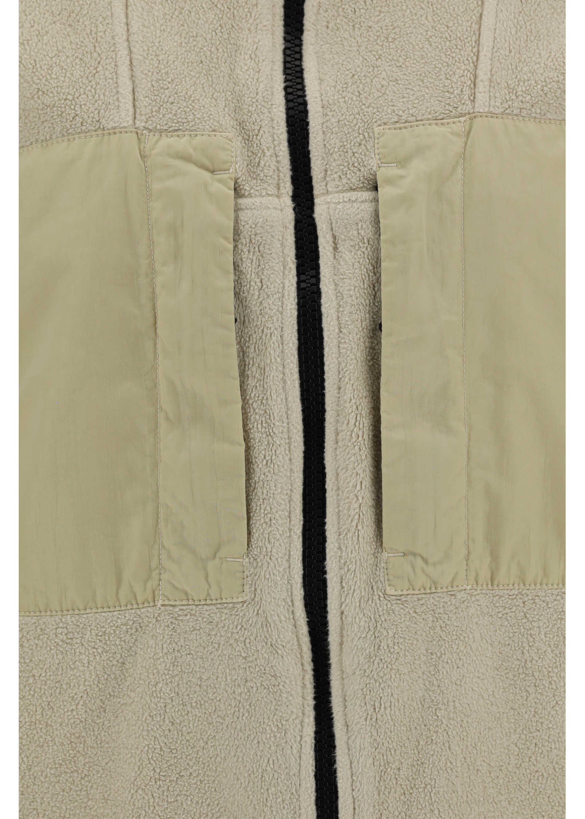 Cotton Jacket by Stone Island, fleece turtleneck style with front closure by double-slider zipper, two front patch pockets with zipper, two side welt pockets with button, ribbed cuffs, regular fit.
