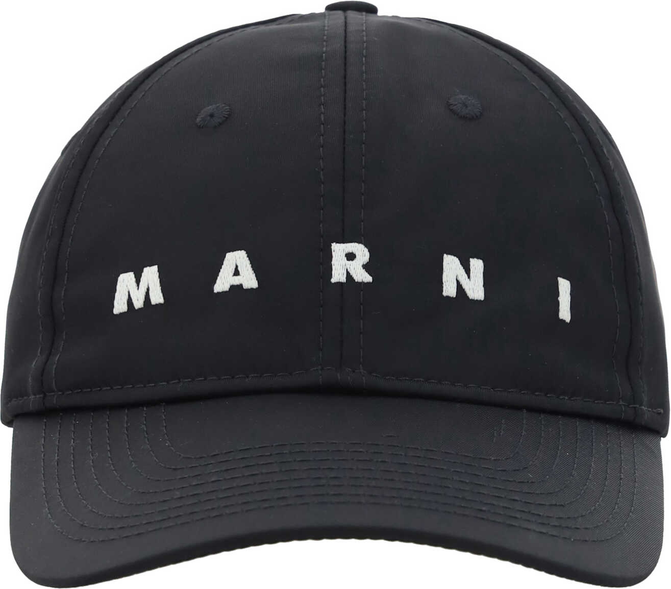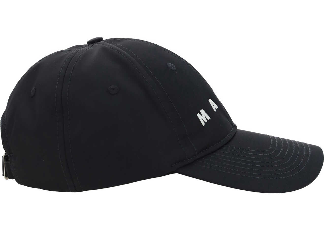 Cotton Baseball Hat by Marni, denim design, adjustable back closure, iconic contrasting embroidered brand logo on front.