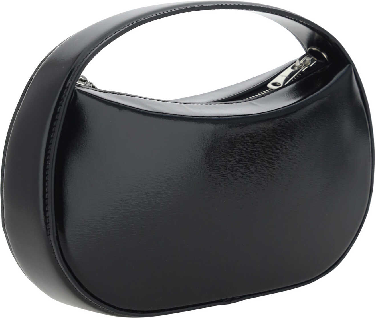 Calfskin Swipe Sound Small Handbag by Coperni, unique design, hobo shape, top zipper closure, single interior compartment, iconic three-dimensional brand monogram plaque embossed on contrasting front, removable and adjustable flat shoulder strap, interior welt pocket.