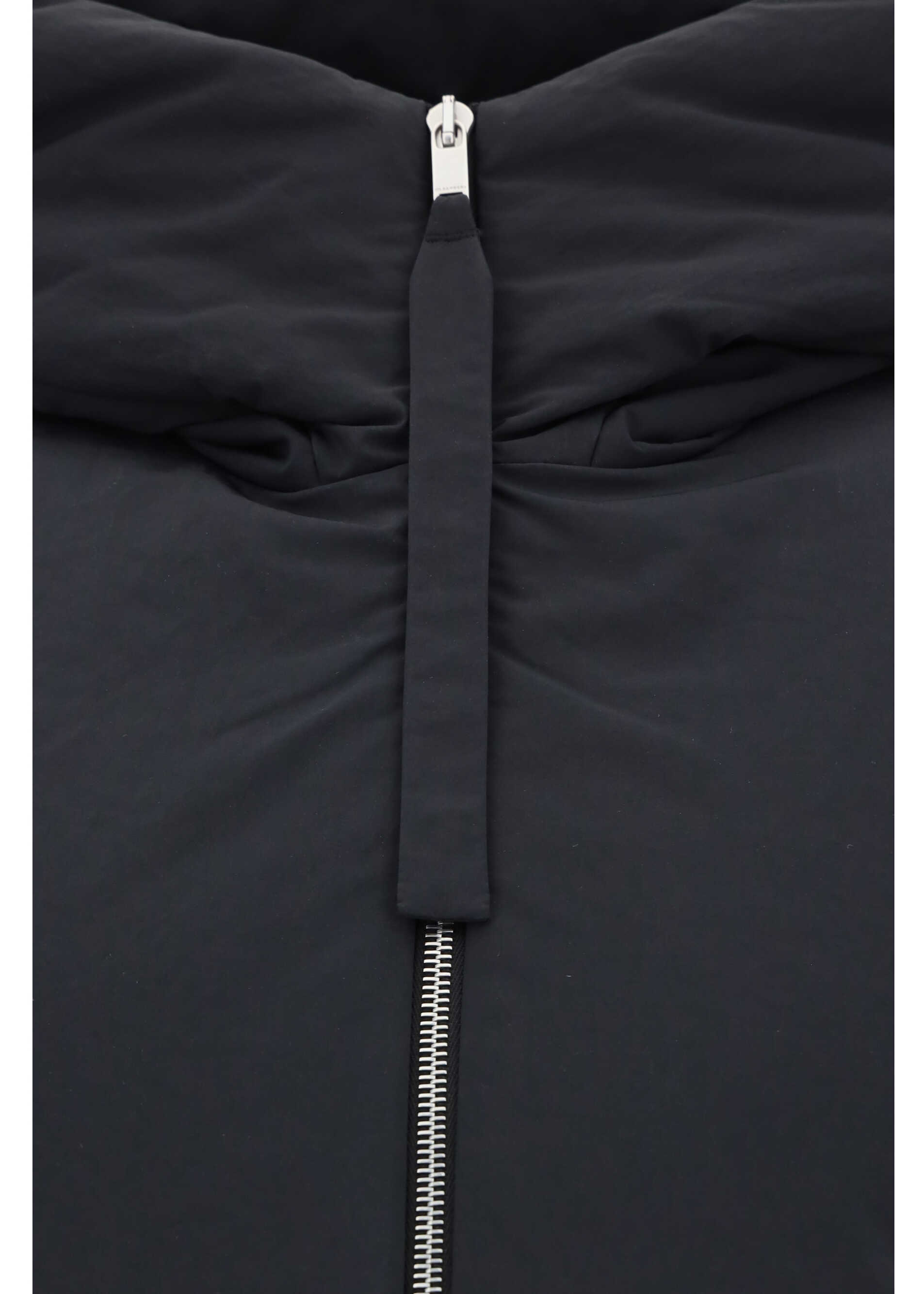 Vest by Jil Sander, hooded model, padded design, front zipper closure, adjustable waistband with inside drawstring, two welt pockets on front, label detail applied on hip.