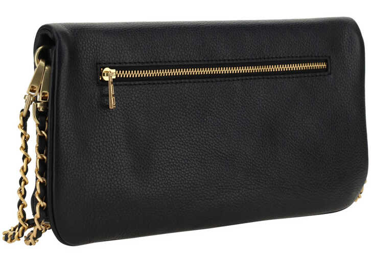 Calfskin Rock Shoulder Bag by Zadig&Voltaire, adjustable sliding chain shoulder strap, grained leather design, iconic brand logo embossed on front, welt pocket on back with zipper.