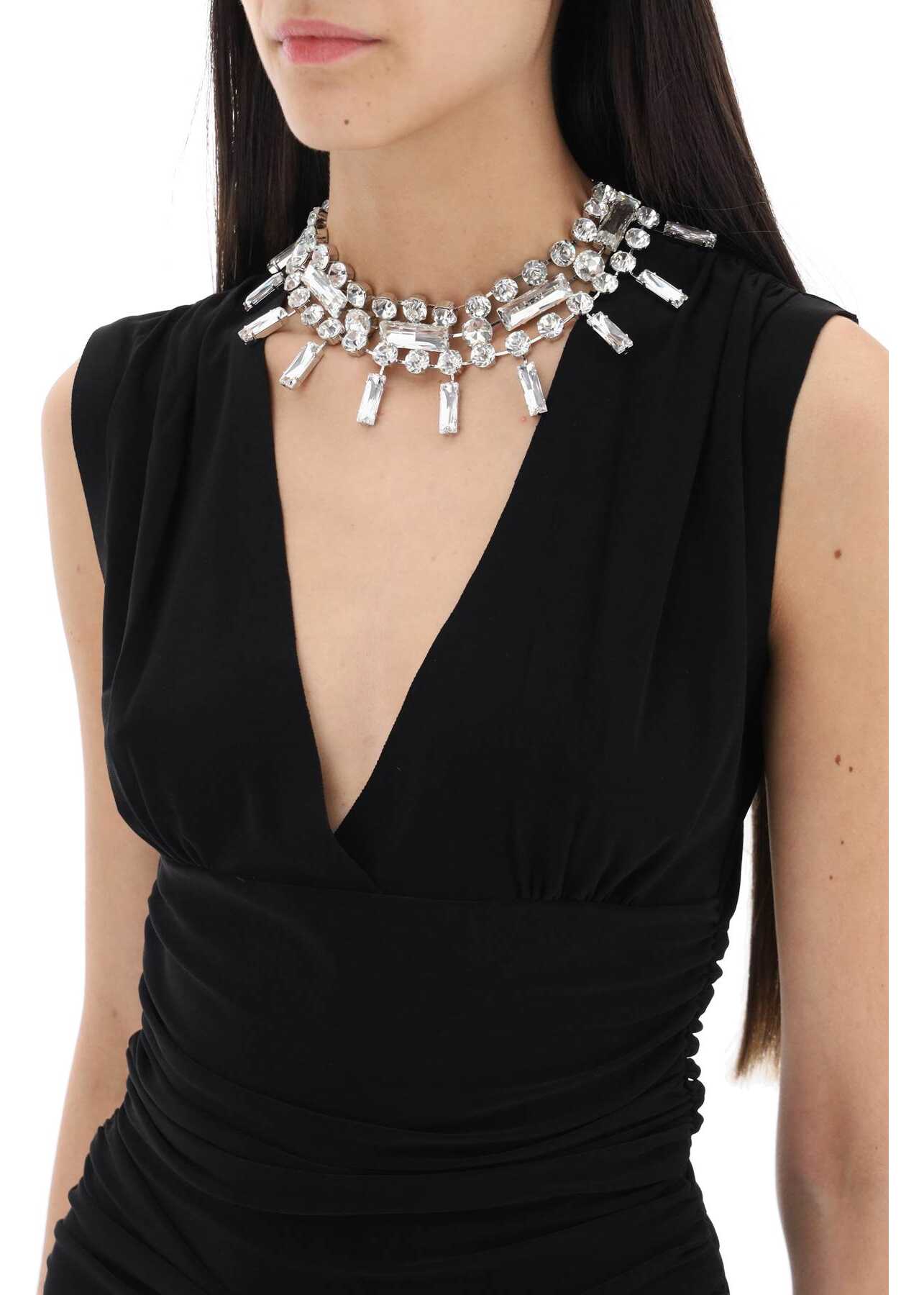 Area chocket with adjustable lobster clasp and embellished with crystal and glass charms.