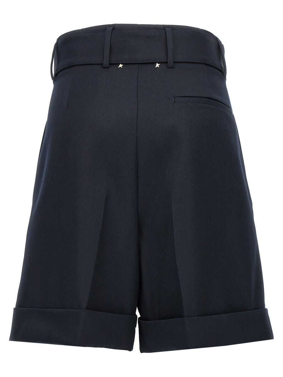 'Demetra' wool blend bermudas, pin tucks and ironed pleat, hook and button zip closure, matching belt at the waist, pockets, turned-up hem