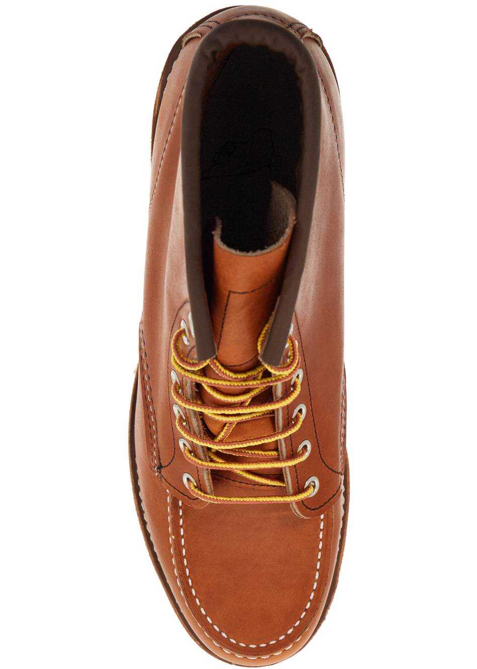 Red Wing Classic Moc Toe ankle boots in Oro-Legacy smooth leather, featuring iconic Moc toe and Traction Tred rubber sole. Contrasting stitching, trekking laces, silver-tone metal eyelets, unlined interior with leather insole.