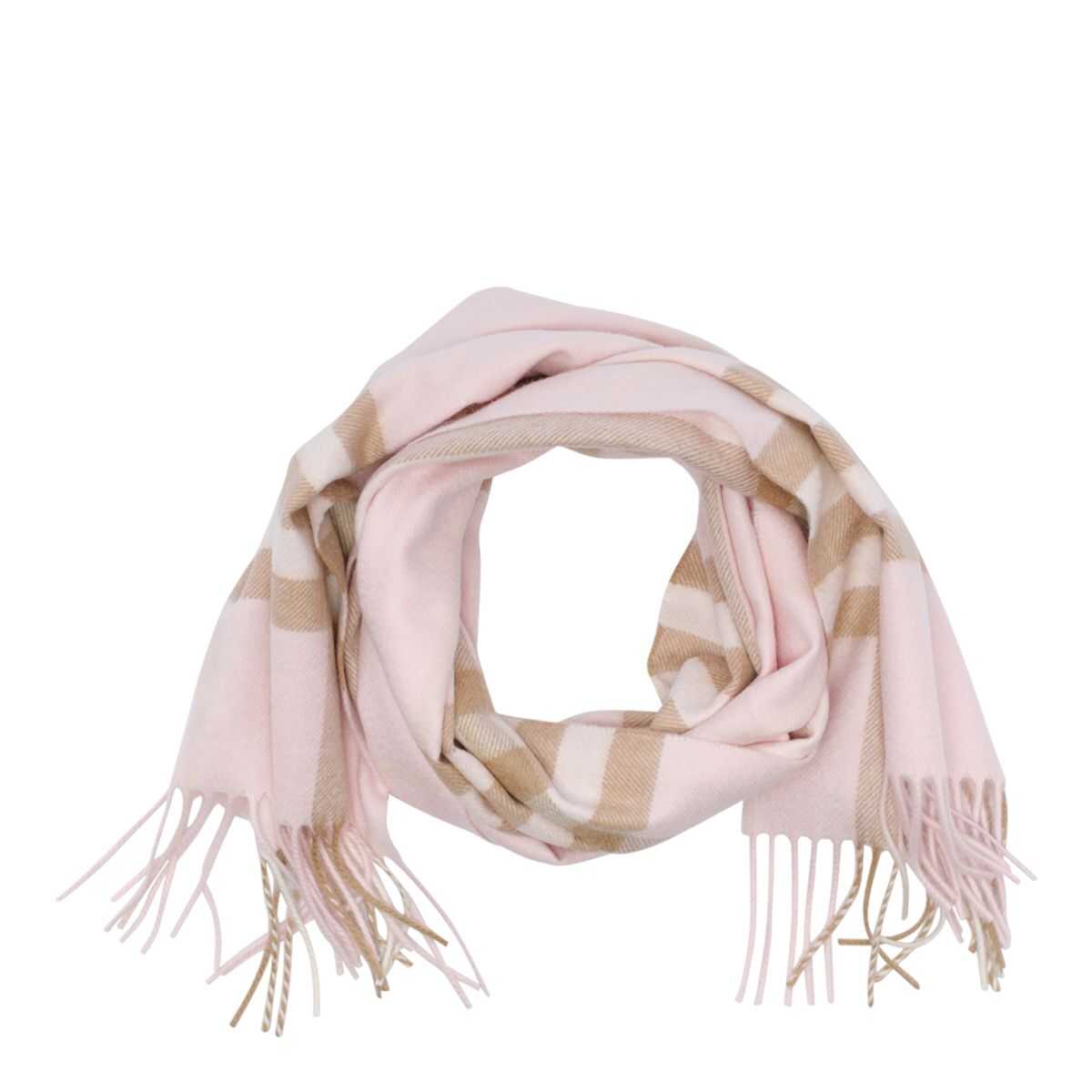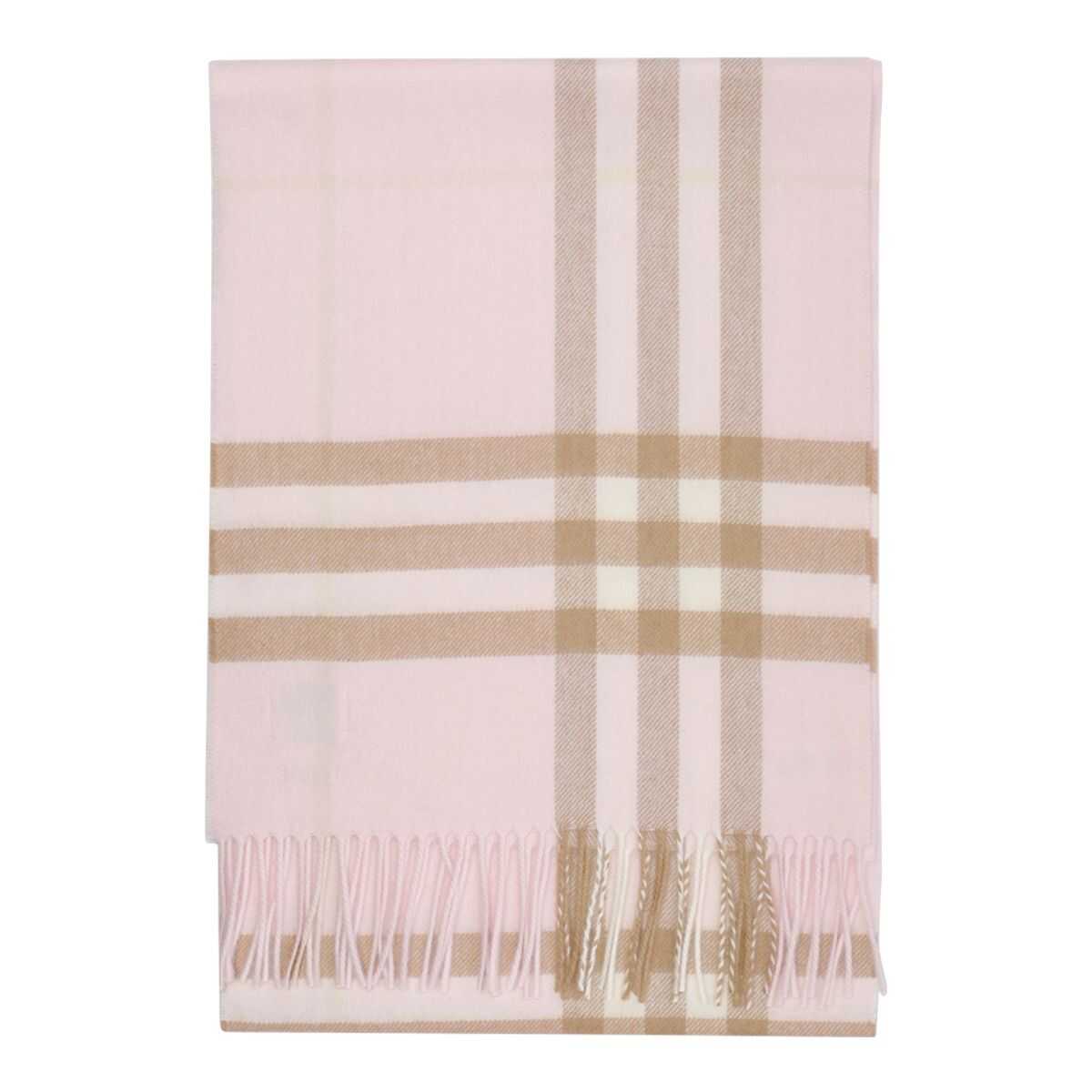 Burberry pink check scarf, fringes details, patch logo, UNI SIZE
