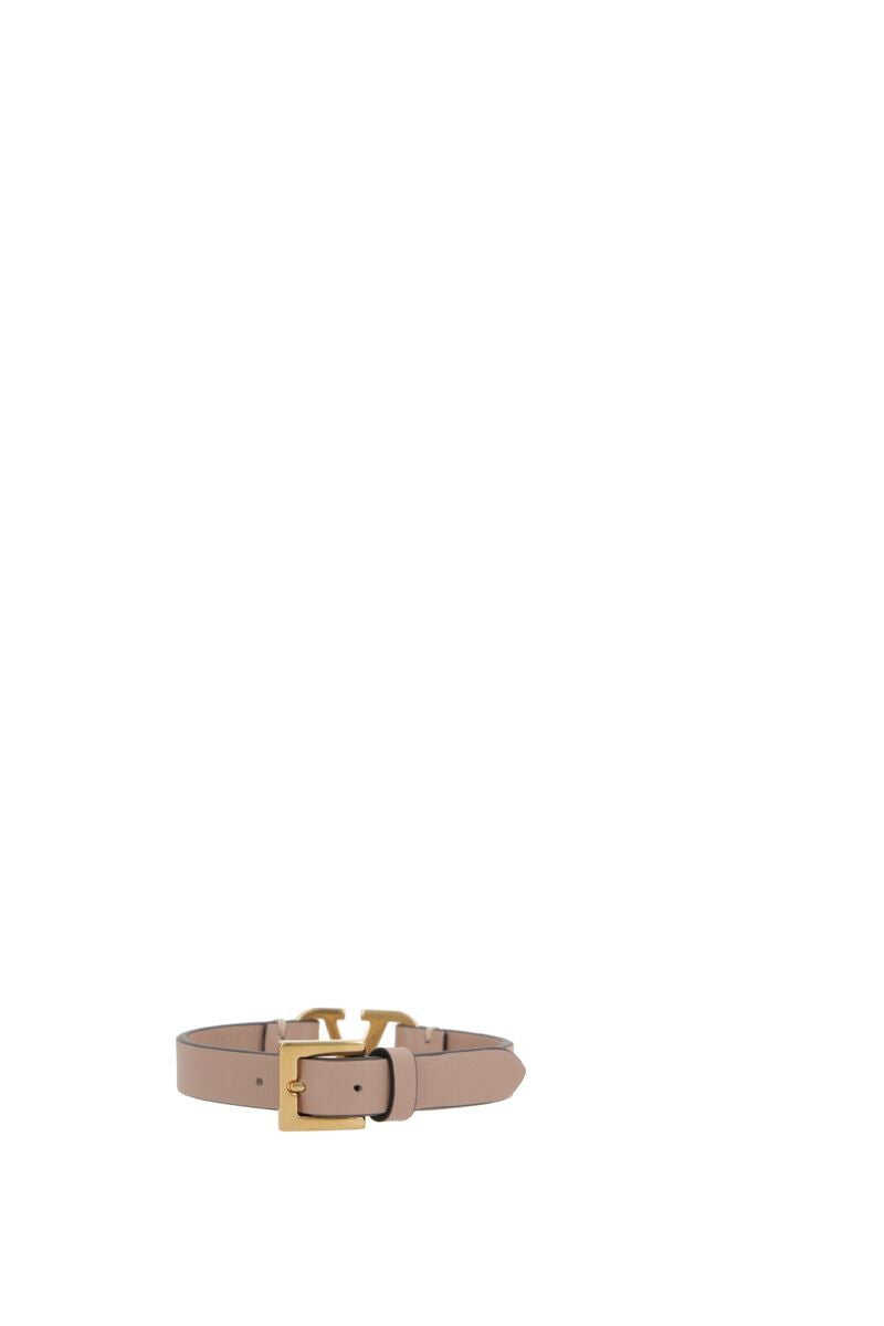 Valentino Garavani bracelet made of smooth nude leather. Featuring gold-tone metal hardware, an adjustable metal buckle closure and a central VLogo detail.