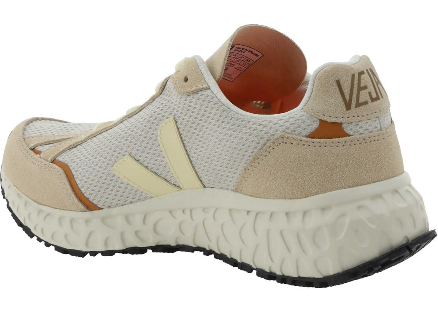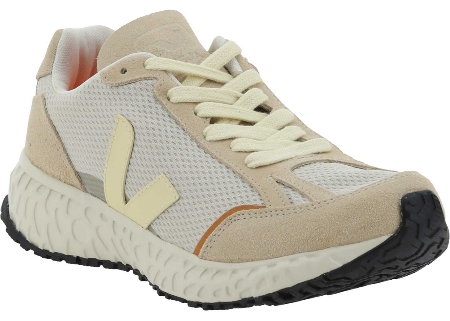 Condor Royale Sneakers by Veja, suede leather details, perforated round toe, contrast panel detailing, contrasting iconic brand logo applique on side panels, lace-up front closure, platform sole, embossed logo tab, logo applique on tongue.
