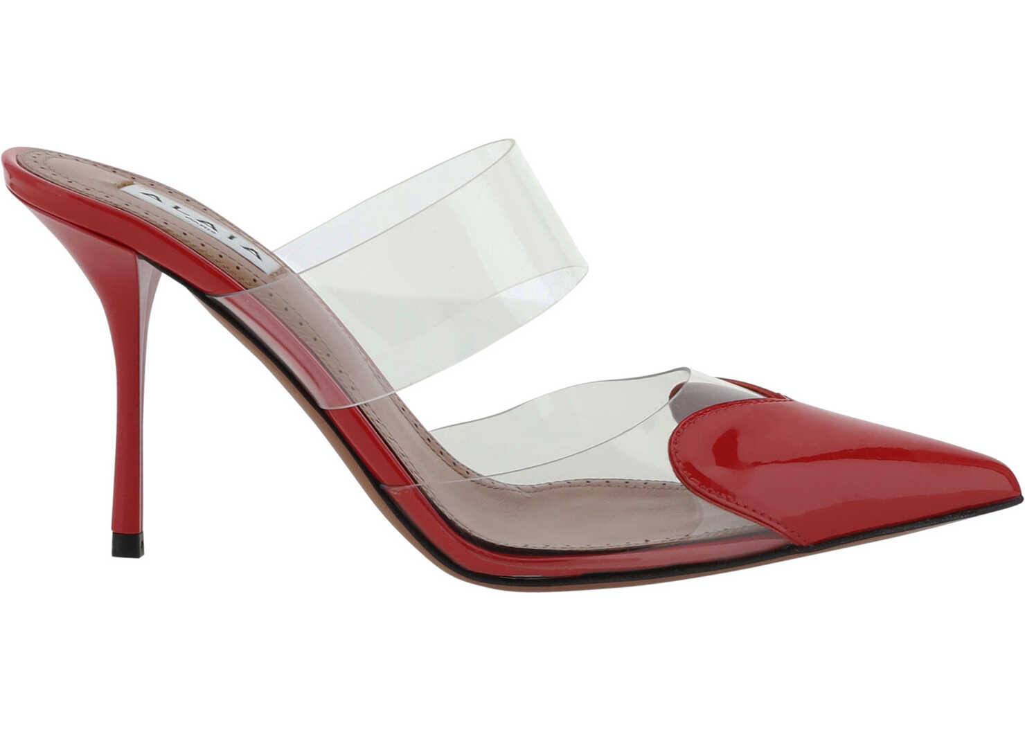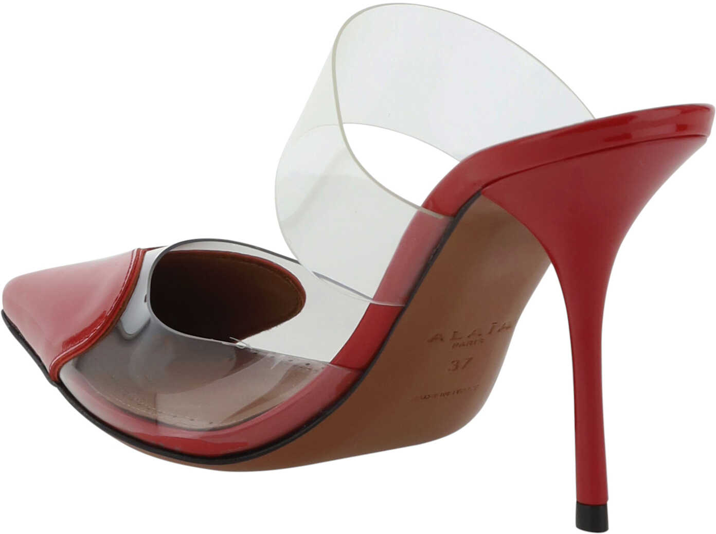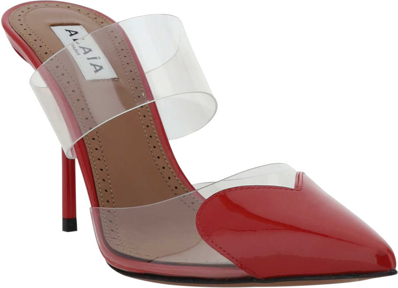 Décolleté from Alaïa, almond toe, wide transparent band applied to the back of the foot, patent leather design, leather stiletto heel, logoed insole.