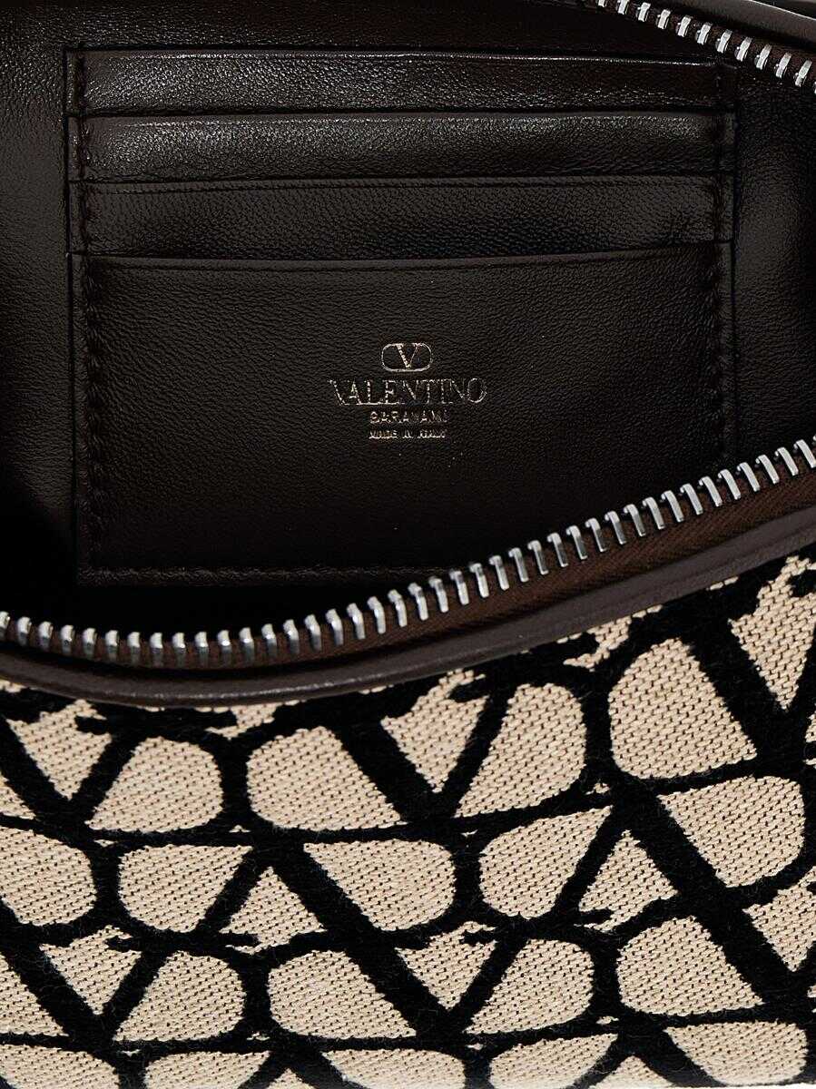 Toile iconographe' crossbody bag in fabric with all-over logo, zip closure, hand-handle and a removable adjustable shoulder strap