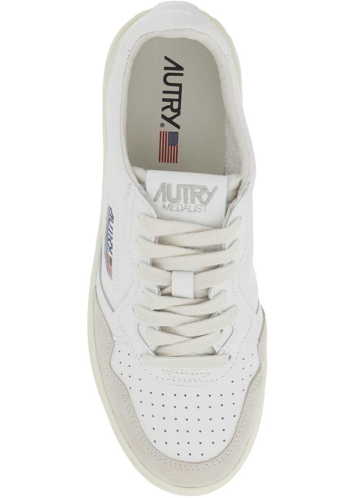 AUTRY Medalist Low sneakers crafted in leather with perforated toe, contrasting suede insets, side logoed fabric inlay and logo embroidery on the tongue. Lace-up closure with cotton laces, leather and terry lining, removable leather insole, rubber sole with side embossed logo.