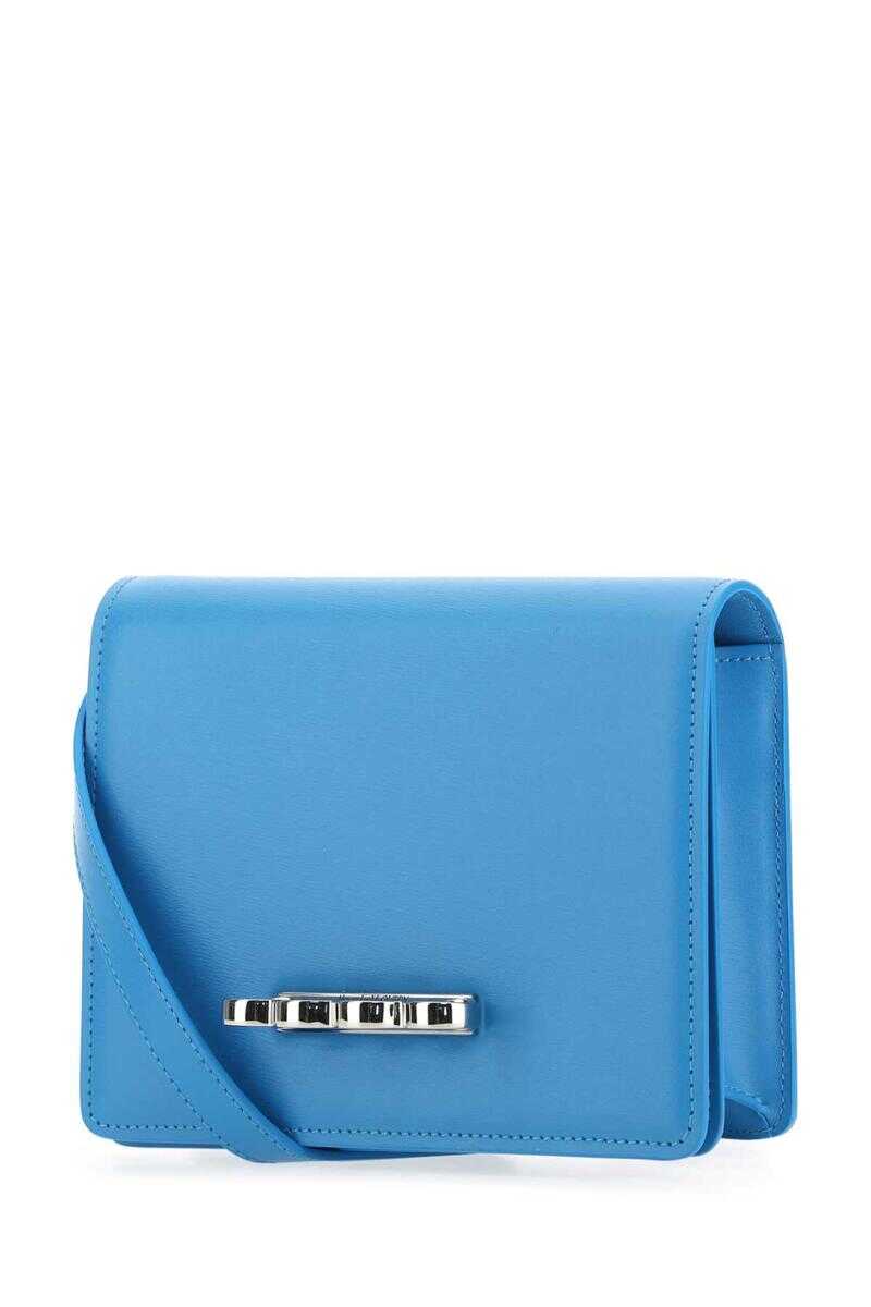 Light-blue leather The Four Ring clutch Width: 21 cm Height: 15 cm Depth: 6 cm Min shoulder strap length: 40 cm Max shoulder strap length: 50 cm