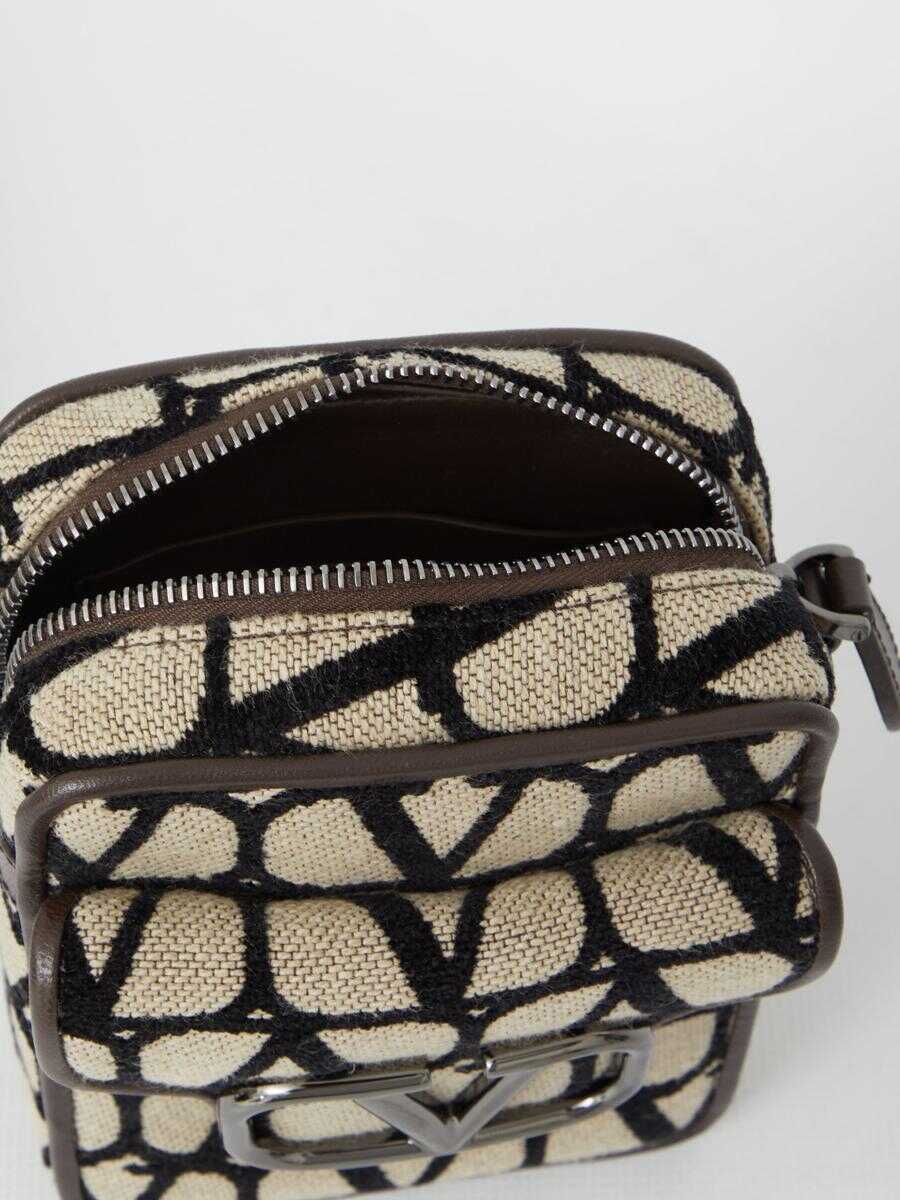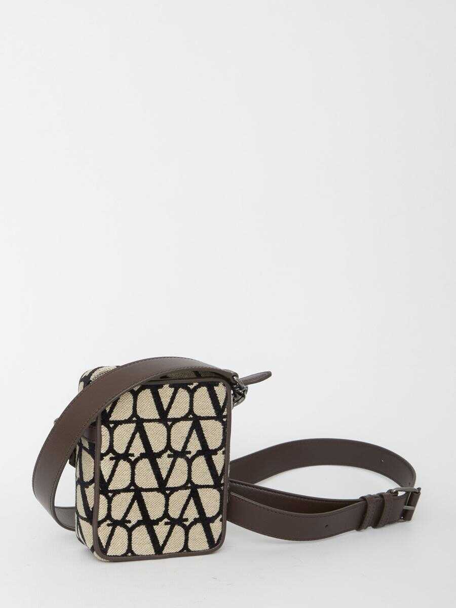 Valentino Garavani Mini Locò shoulder bag in beige and black Toile Iconographe. It features silver-tone metal VLogo detail on the front, adjustable and detachable shoulder strap, one front press-stud flap pocket, zip closure and one main interior compartment.