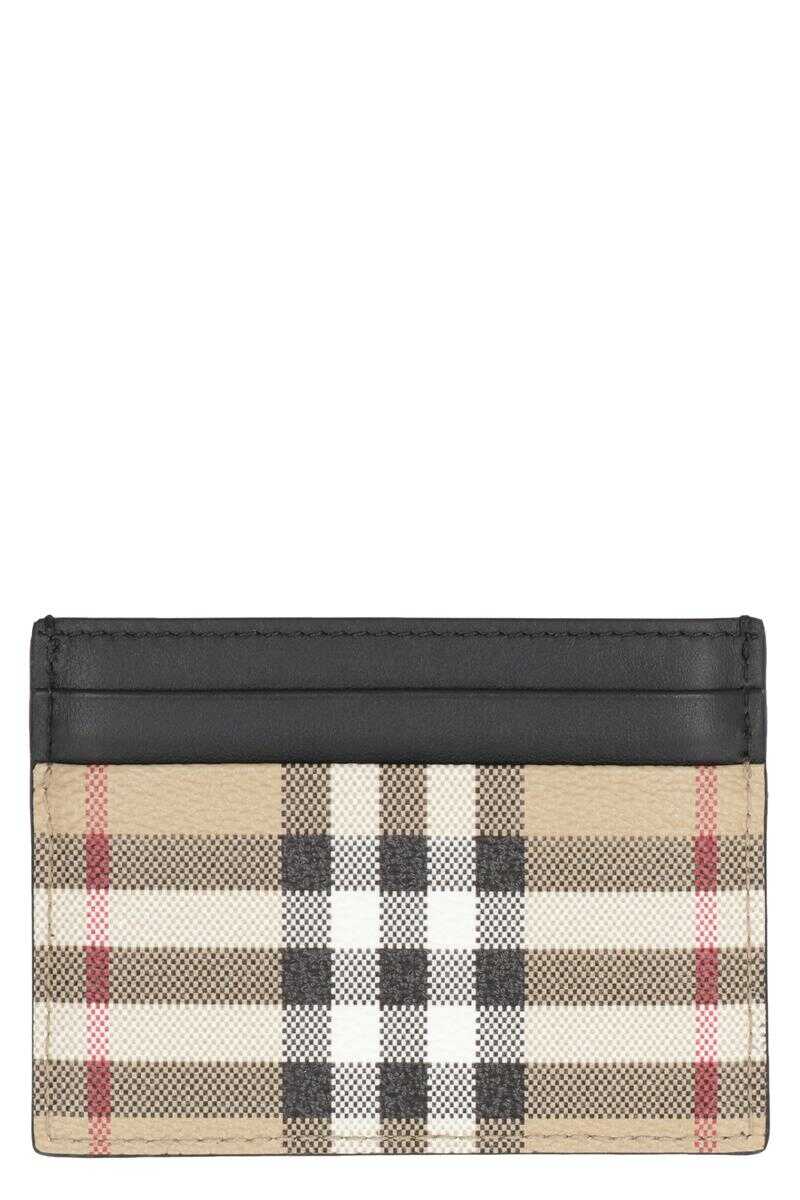 Leather and checked fabric card holder