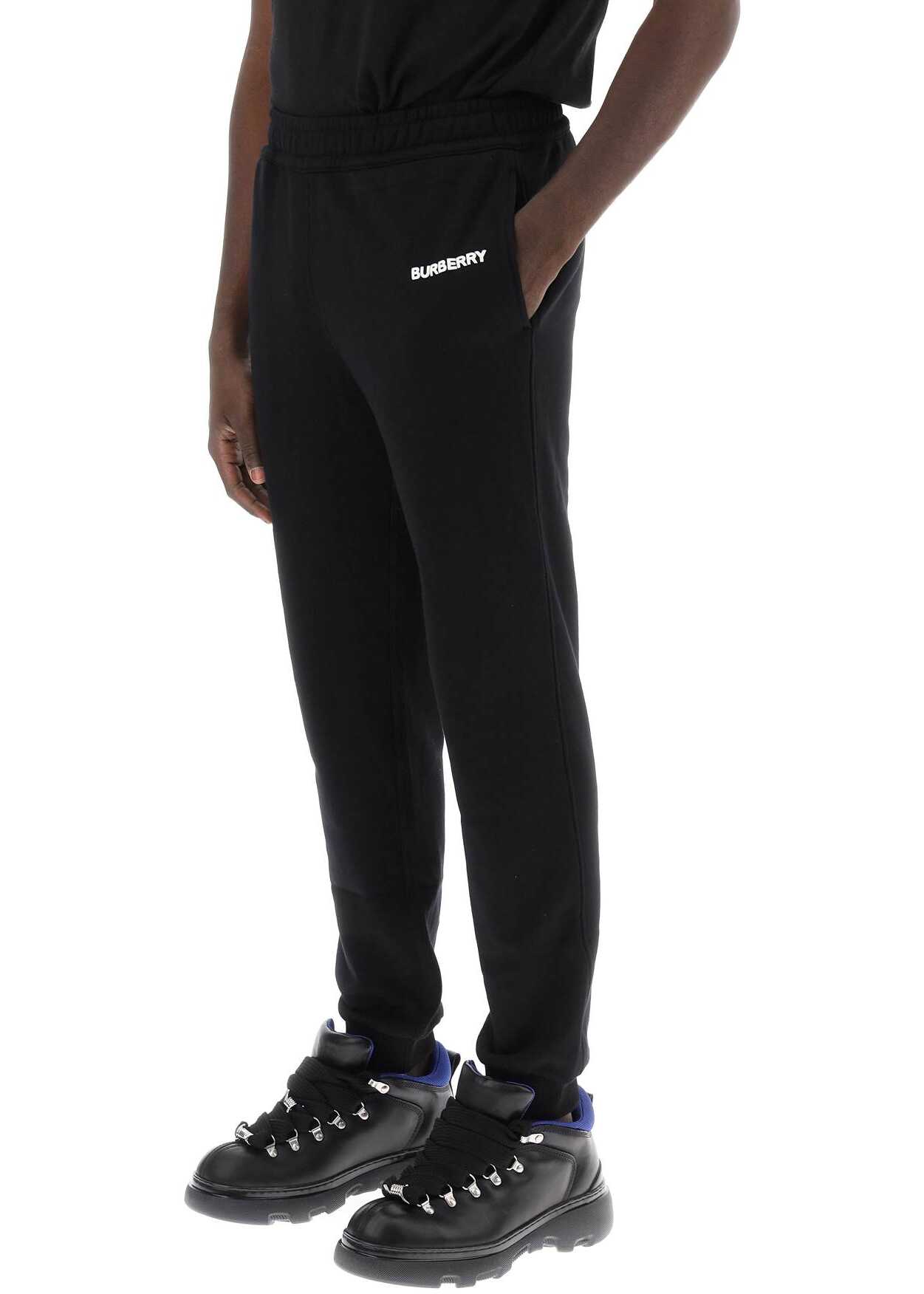 Burberry joggers crafted in cotton french terry with embossed logo on the leg. They feature elasticated waistband with inner drawstring, side seam pockets, a welt pocket on the back and hem with ribbed elasticated cuffs. Loose fit. The model is 187 cm tall and wears size M.