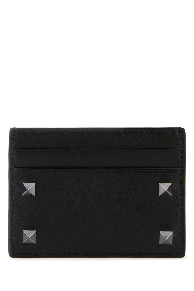 Black leather Rockstud card holder Width: 10,5 cm Height: 8 cm