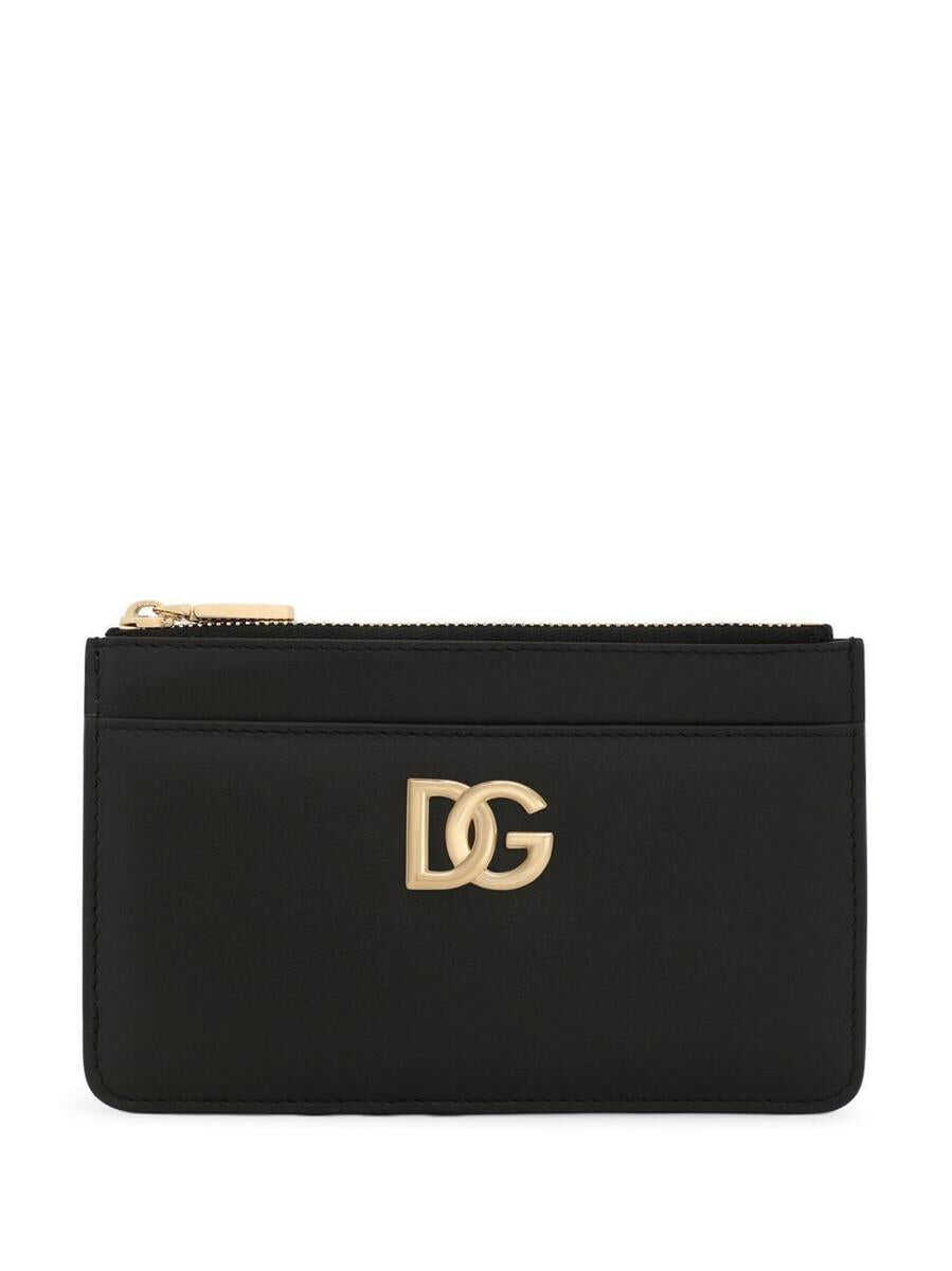 Black, leather, logo plaque, gold-colored details, top zip closure and single compartment.