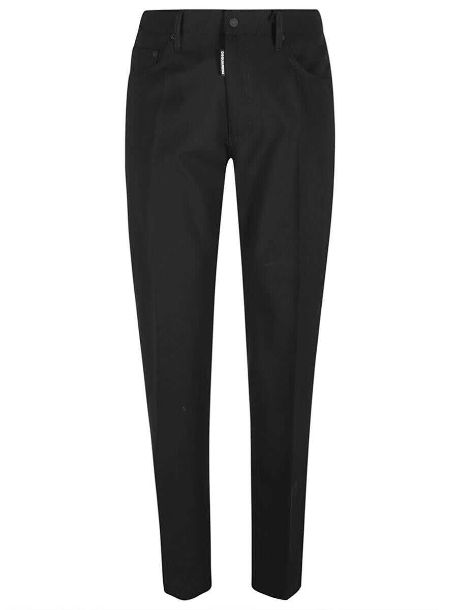 tapered wool blend trousers from DSQUARED2 featuring black, virgin wool blend, pressed crease, belt loops, tapered leg, slim cut, front press-stud fastening and classic five pockets.