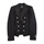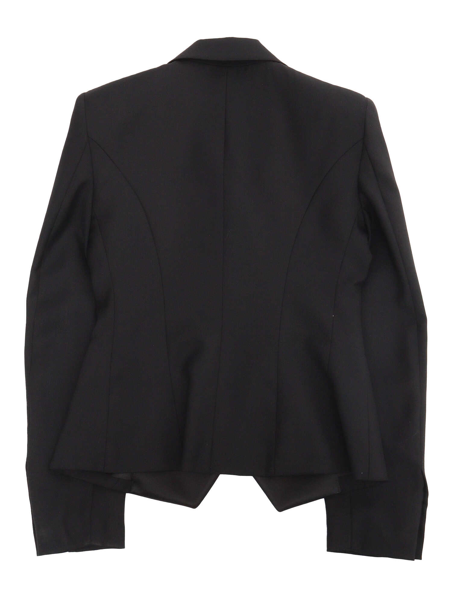 Balmain girls' black double-breasted blazer in stretch wool with lapel collar and silver buttons.