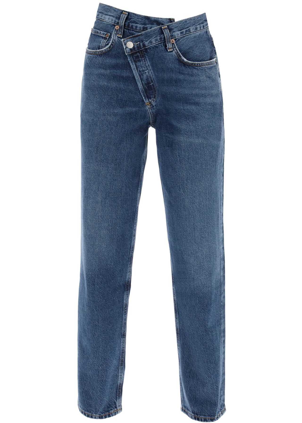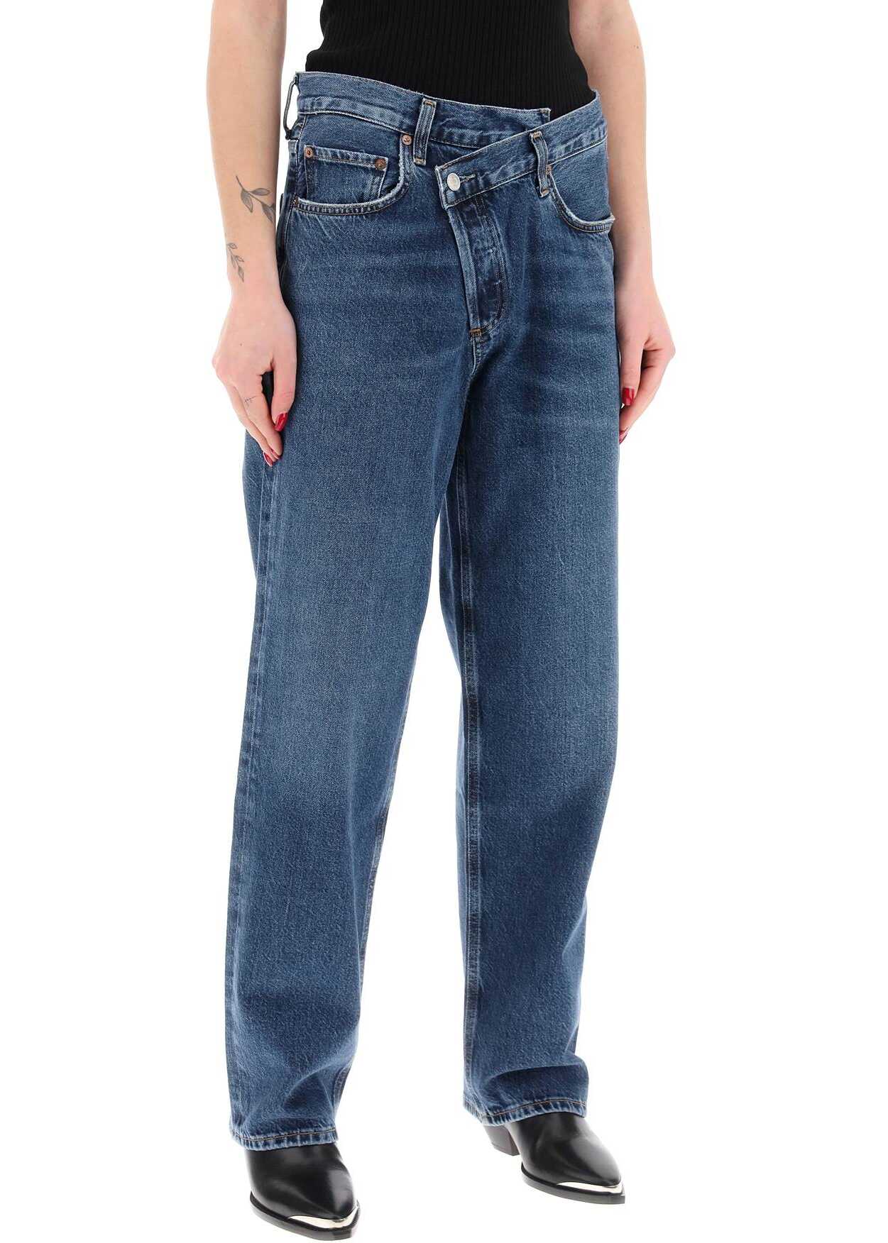 Agolde jeans crafted in vintage-washed regenerative cotton denim, with five-pocket design characterized by front criss-cross closure with hidden buttons. They feature belt loops on the waistband. Loose fit with straight cut. The model is 177 cm tall and wears size 26.