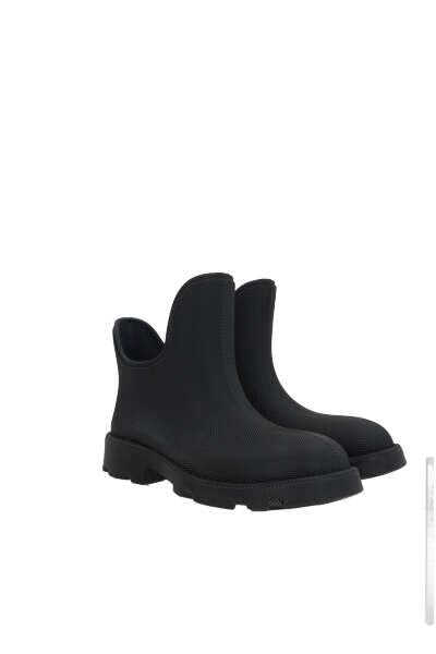 Burberry's rain boots entirely crafted in black textured rubber. Featuring a round-toe silhouette, fabric lining and lug rubber sole.