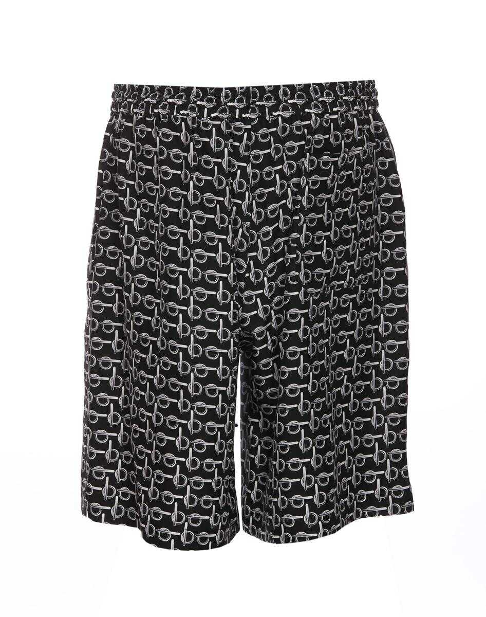 Burberry black shorts, elasticized on waist, coulisse closure, printed, US SIZE