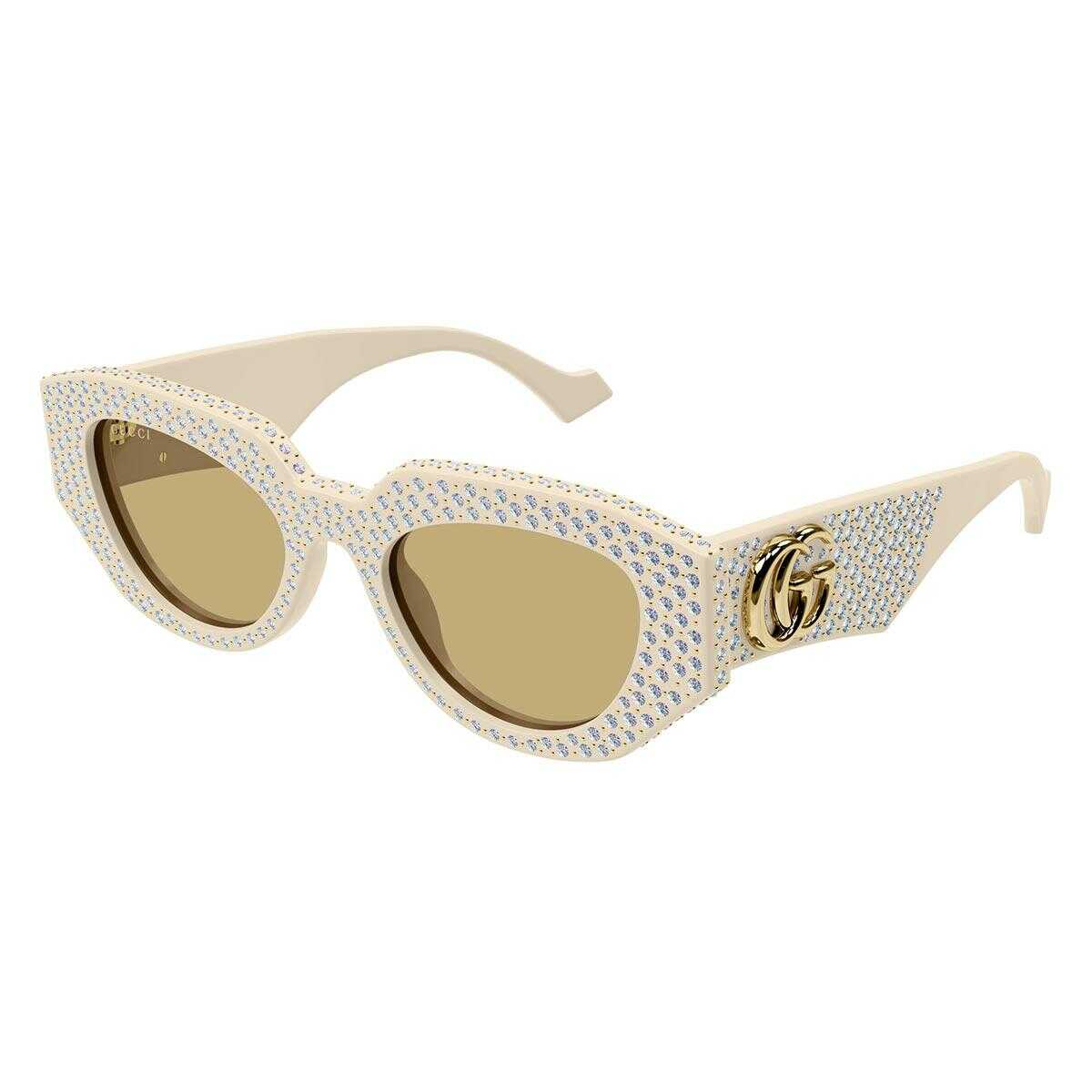Sunglasses Gucci Eyewear Ivory Brown Cat-Eye Metal Women